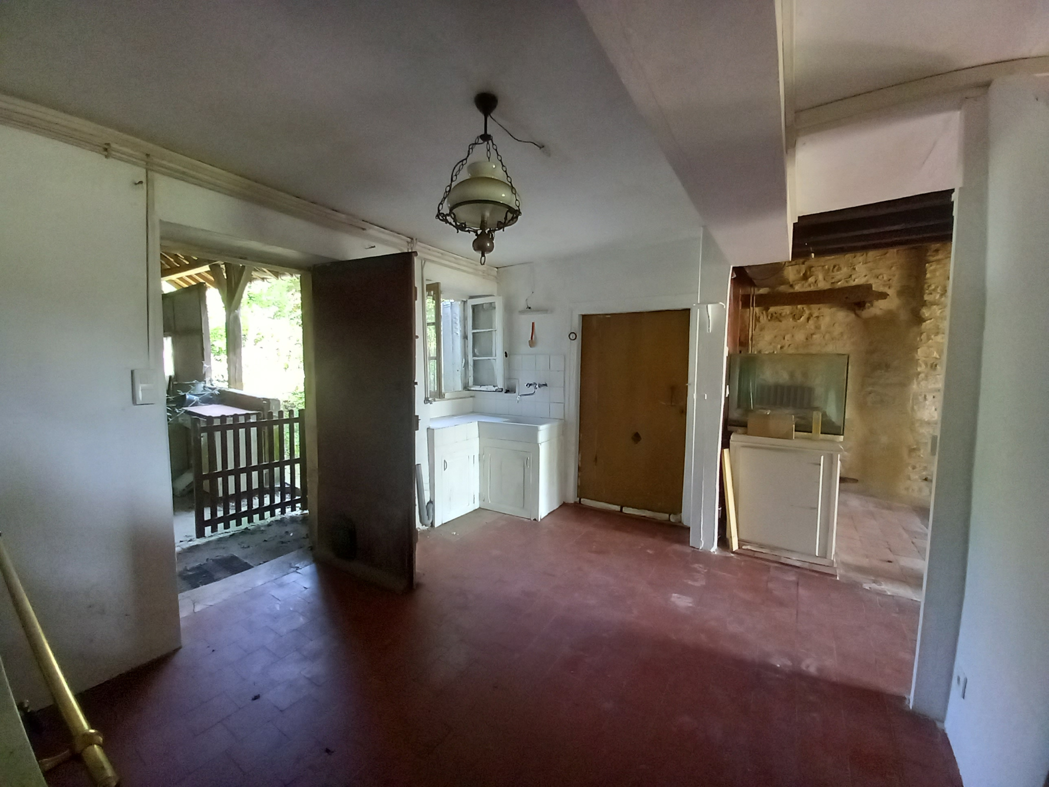La maison se compose d'un rez-de-chaussée avec l'entrée ouverte sur la pièce à vivre d'environ 41 m2 , wc, la cuisine qui donne accès au préau et au jardin,cave.