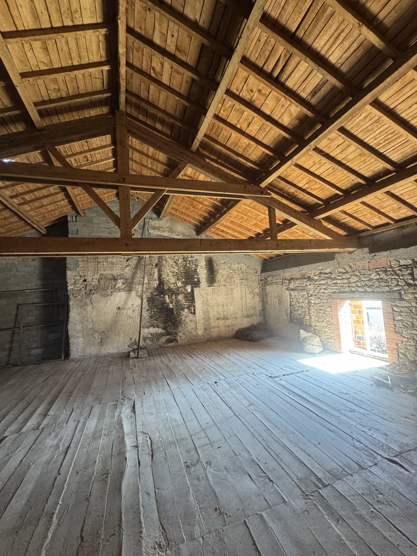 Une seconde partie sur deux niveaux, avec étable d'environ 100 m2 au RDC et à l'étage un beau plateau de 100 m2 également. Toiture et charpente en excellent état.