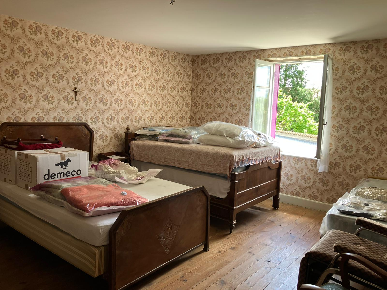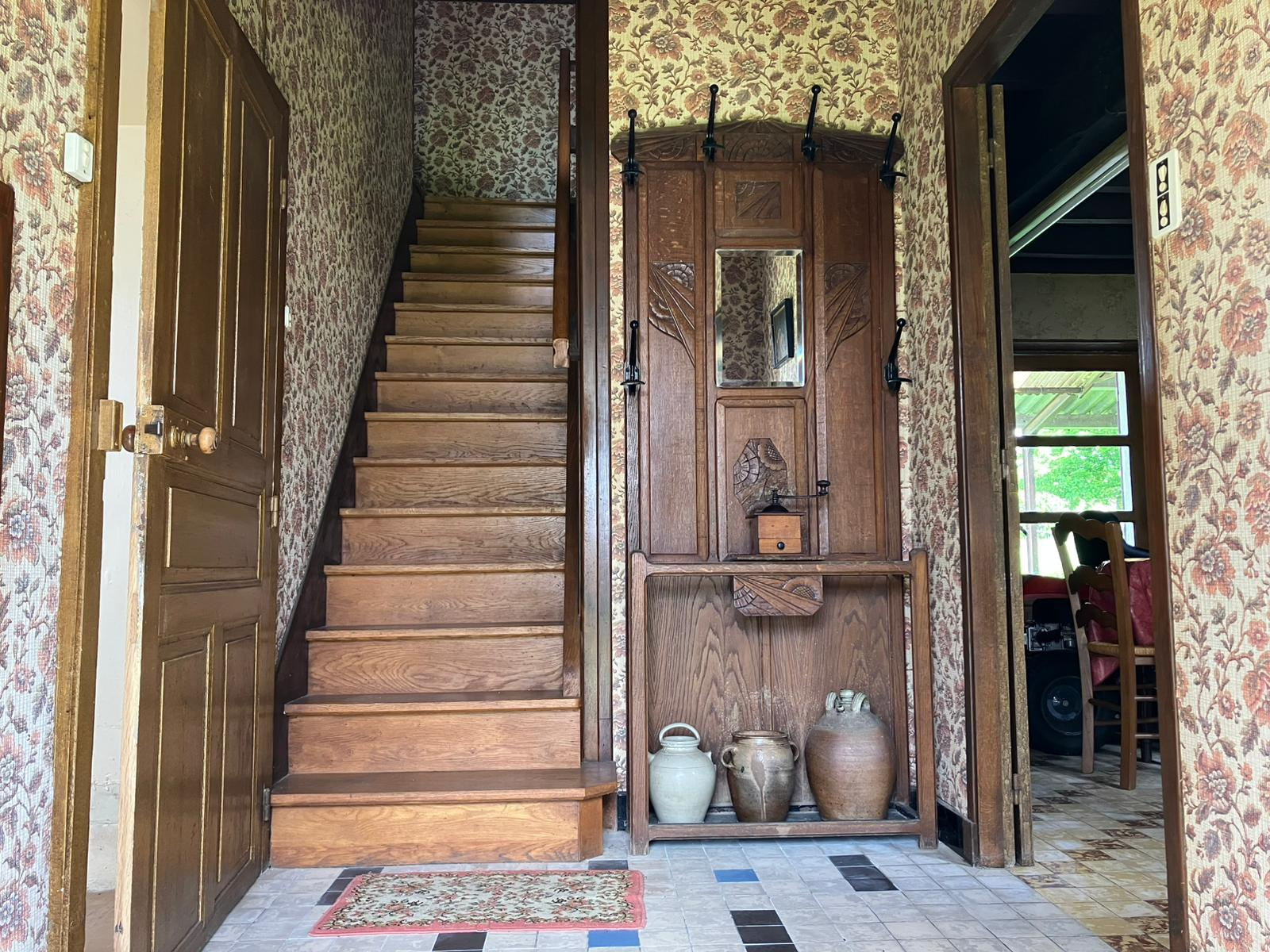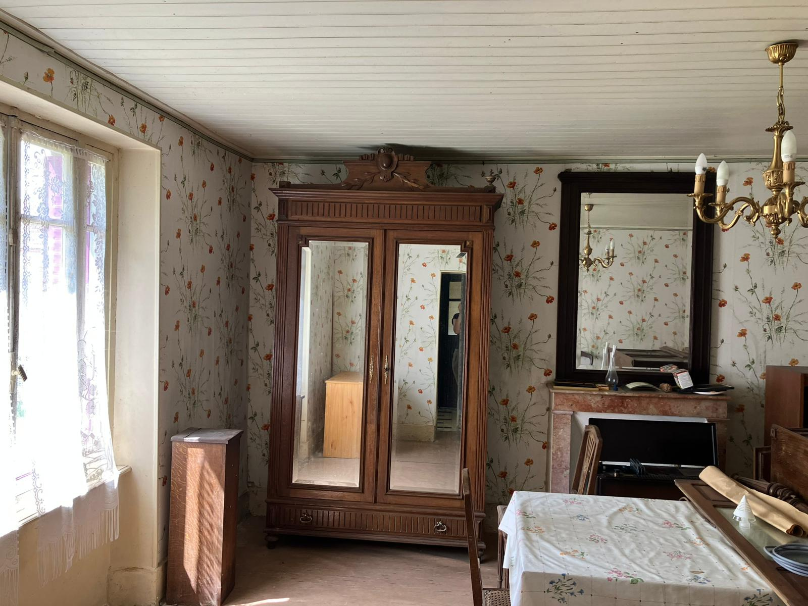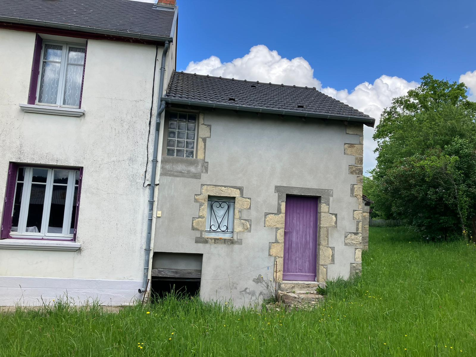 Auv 1170 : Longère dans un hameau sur 1200m2, calme, à rénover La surface totale au sol du bâtiment principal + l'extension à l'arrière est de 180m2. La surface habitable du DPE est de 104m2, mais certaines pièces de la partie « maison » ne sont pas incluses, comme une 4ème chambre, une grande arrière-cuisine avec WC séparé et une pièce à rénover sous combles avec une toiture récente. À gauche, il y a une ancienne grange avec encore beaucoup de possibilités. Les pièces habitables, chauffées par des poêles à bois, sont : Rez-de-chaussée : Entrée : 4,3m2 Salon : 21,5m2 Cuisine : 23m2 Salle d'eau : 6,5m2 Arrière-cuisine : non mentionnée car non chauffée Étage : Couloir et palier : 8m2 Chambres : 22, 12,5 et 6m2, et une non mentionnée La grange a des planchers en béton et pourrait également être aménagée pour créer des espaces habitables supplémentaires. L'assainissement individuel est entièrement à installer, tout comme l'électricité qui est trop ancienne, le double vitrage, l'isolation, etc., mais l'état général et les planchers intermédiaires sont bons. Il y a également 2 petites dépendances et un joli puits. Belle cave voûtée avec puits. Terrain autour sur trois côtés. Le chemin est très petit et purement local, sans véritable passage.