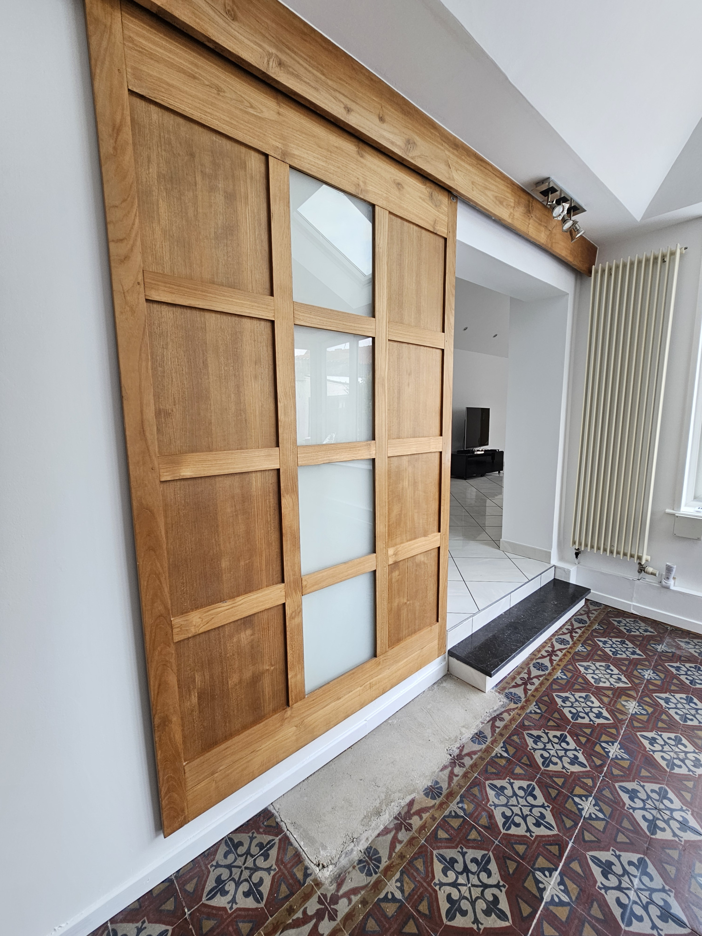 Un salon au charme préservé: carreaux de ciment, bois, hauteur sous plafond et baigné de lumière de 28m2.
