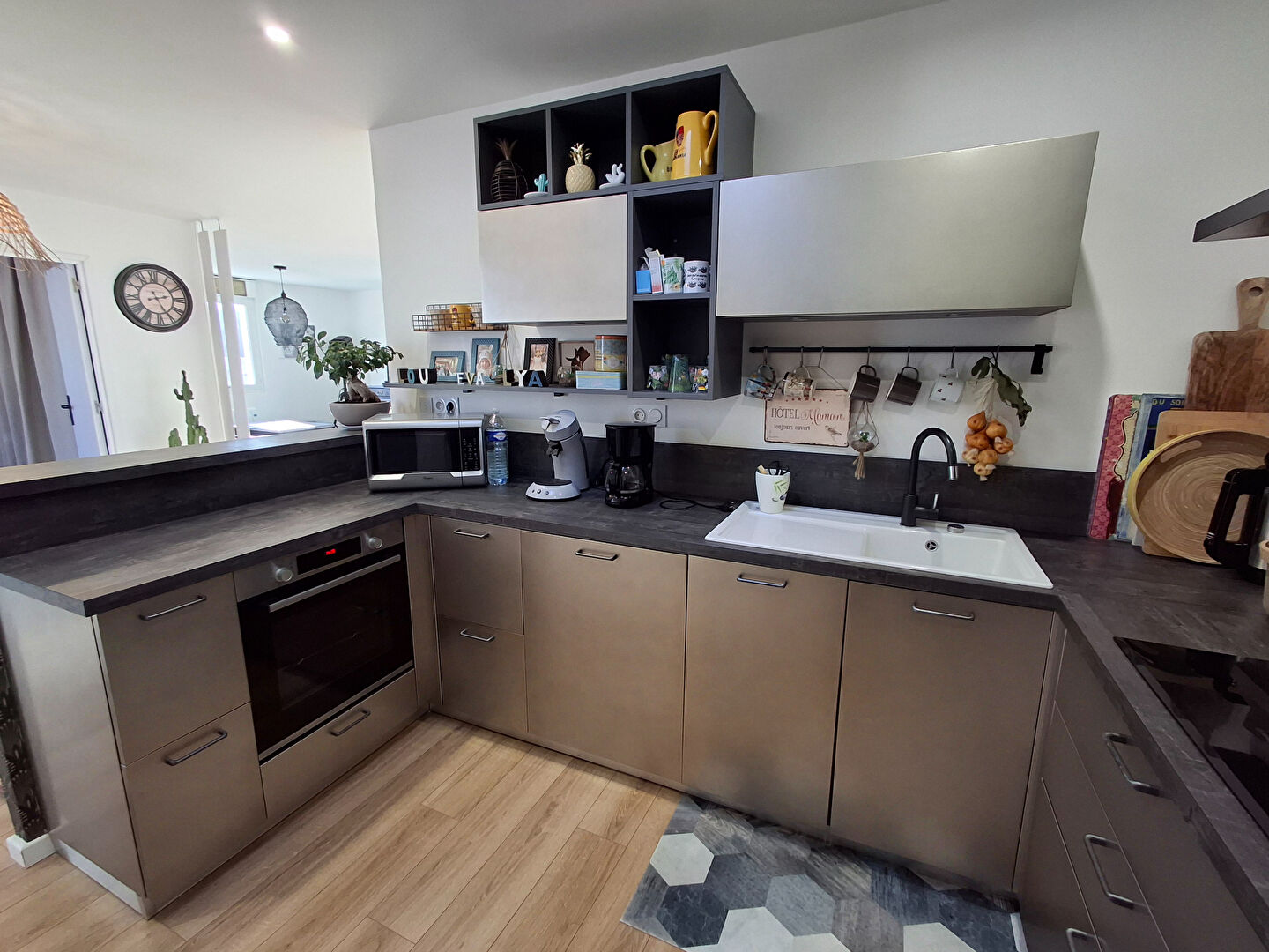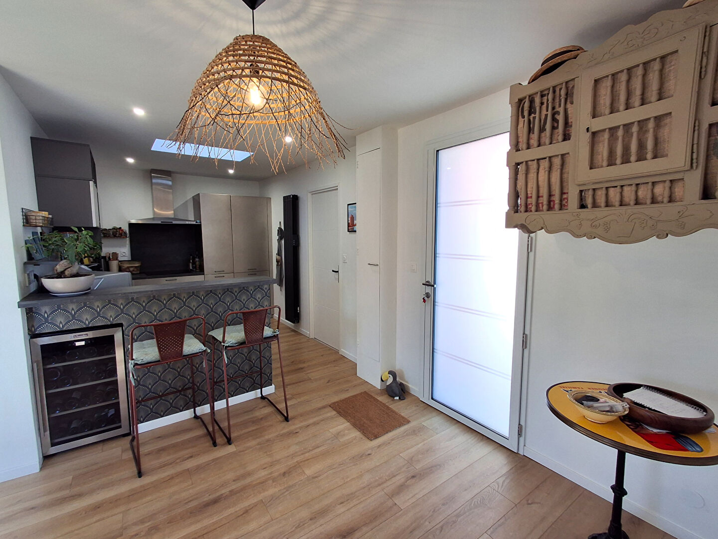 A découvrir à LA JARRIE, bourg tous commerces, à 10 minutes des plages, accès gare à proximité, maison de plain-pied entièrement rénovée avec goût, lumineuse comprenant entrée sur séjour - salon, cuisine neuve ouverte aménagée et équipée, dégagement, 2 chambres avec placard, SDE, WC. Accès à une troisième chambre et SDE. Actuellement la troisième chambre avec SDE et coin cuisine est louée en logement étudiant (bail de septembre à juin 450Euro charges incluses) double accès au T2, par la maison ou indépendant au logement. Petites dépendances, buanderie/atelier. Belle terrasse, jardin arboré et clos de murs, parcelle de 665m². Stationnement, possibilité d'extension. Les informations sur les risques auxquels ce bien est exposé sont disponibles sur le site Géorisques : www.georisques.gouv.fr