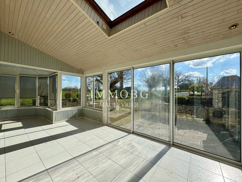 Elle offre: une entrée, une cuisine aménagée, un salon séjour agrémenté d'une cheminée insert, une véranda spacieuse et lumineuse.