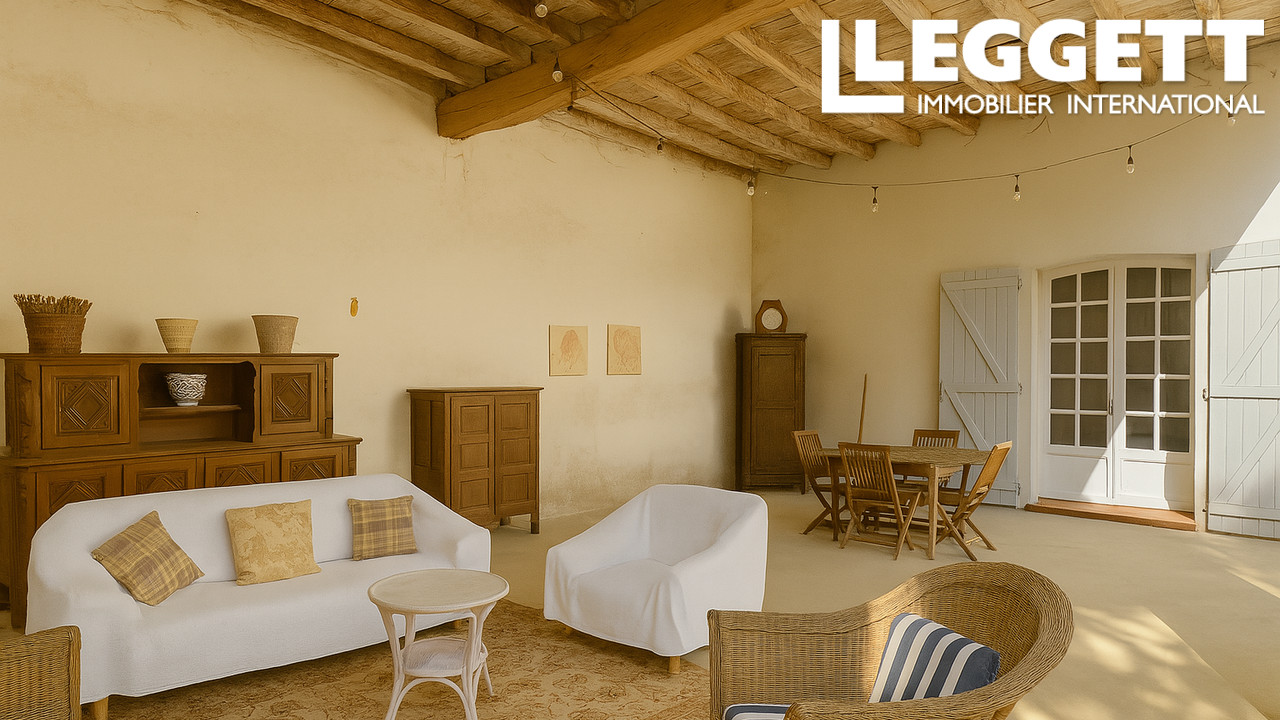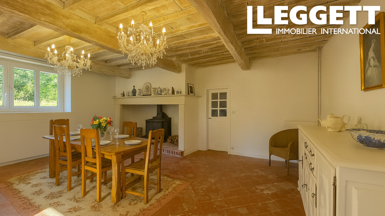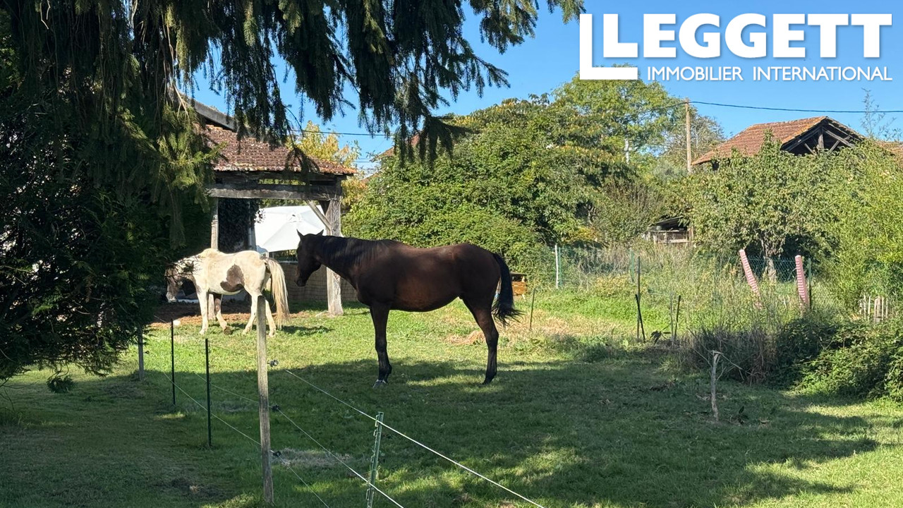 Le terrain privé et sécurisé offre une terrasse ensoleillée avec étang, fontaine et plantations matures. Dépendances : grange, hangar pour chevaux et carport. Avec vue sur les montagnes et la vie authentique d'un village français, cette propriété allie charme et art de vivre.
