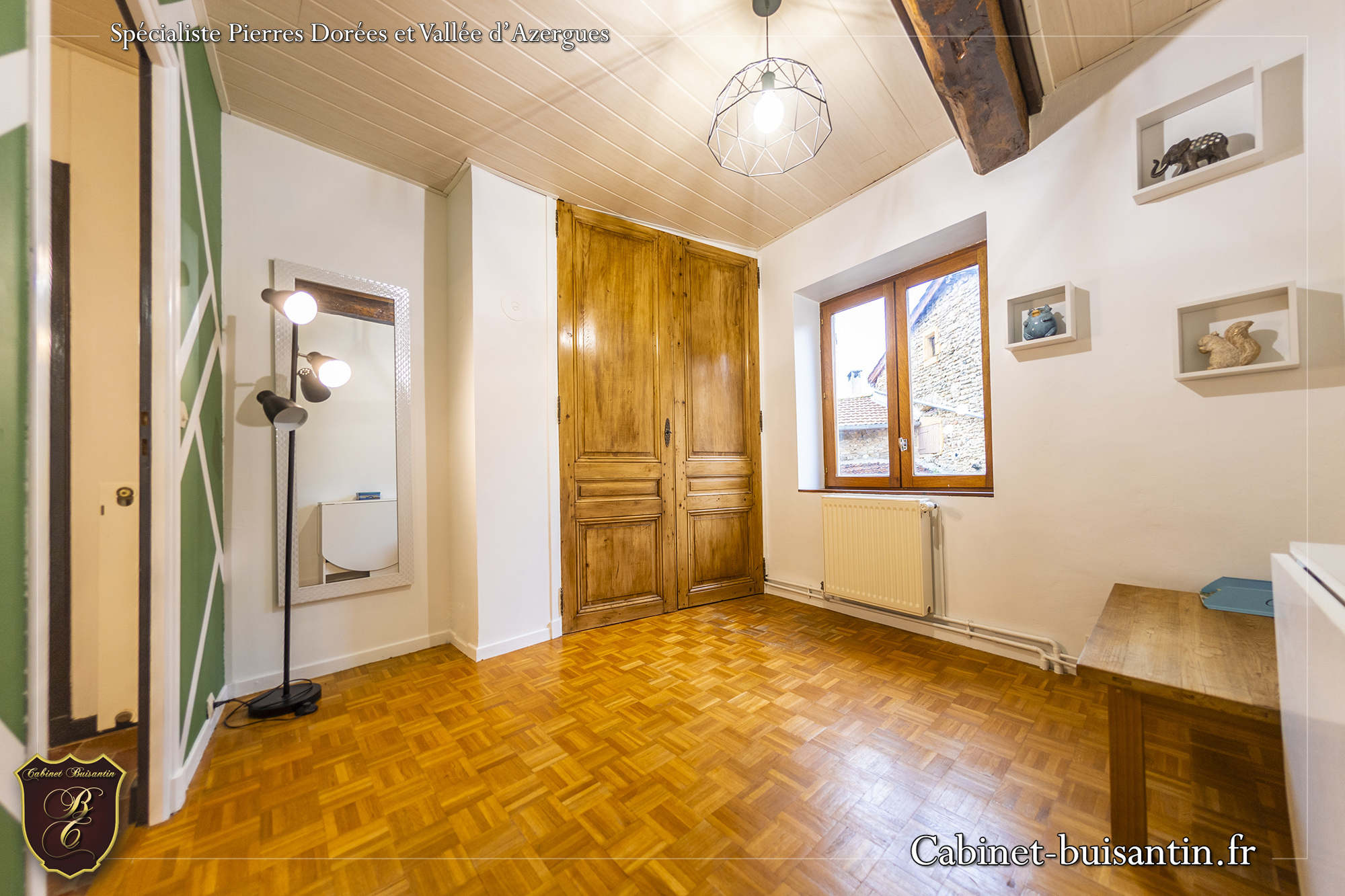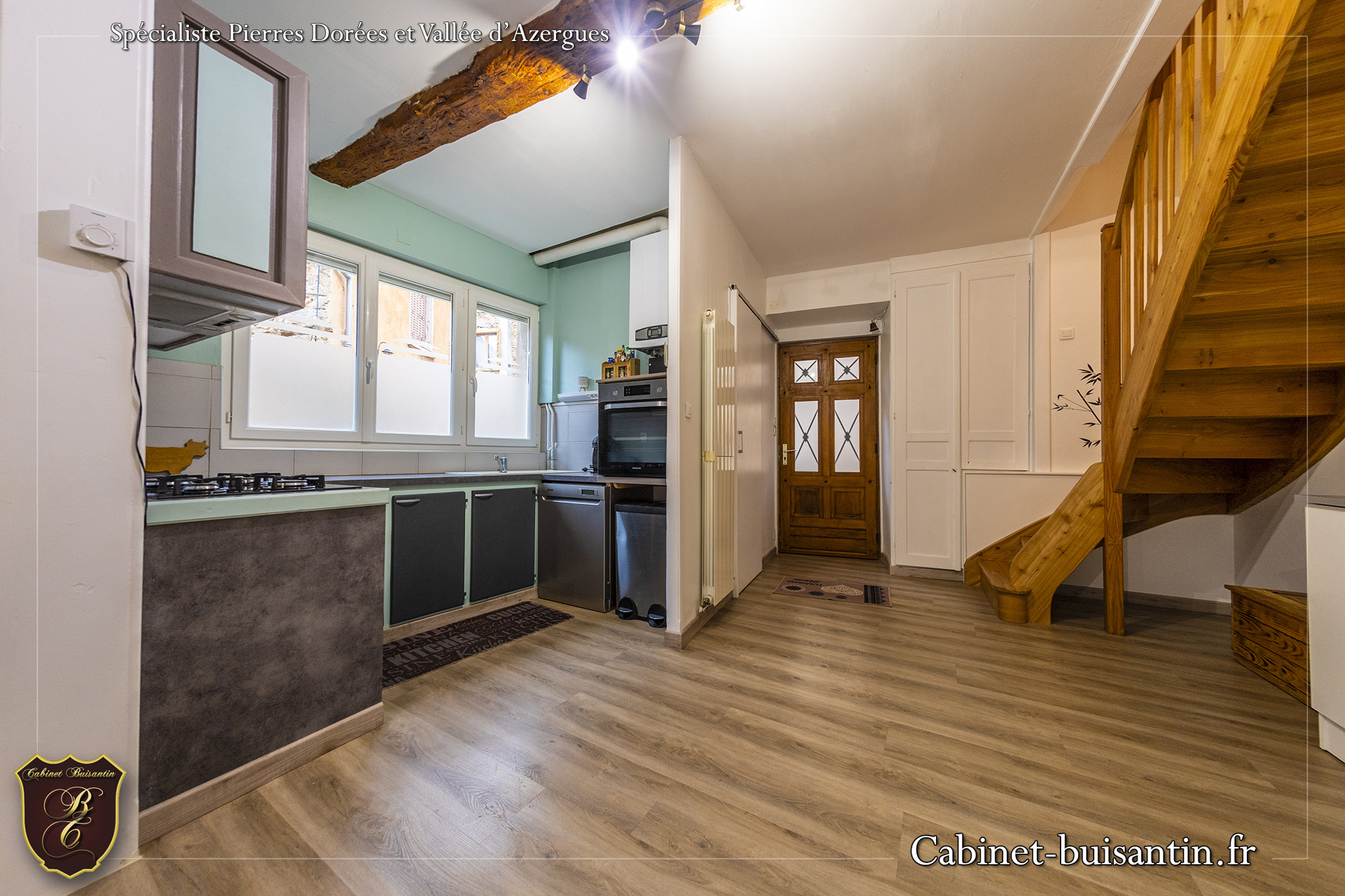 EXCLUSIVITE - LEGNY - Proche du village du Bois d'Oingt avec commerces et commodités (gare à proximité). Maison de village en pierres d'environ 90 m2 habitables. Elle comprend au rez-de-chaussée : Cuisine équipée ouverte sur le séjour (45 m2) avec possibilité d'installer un poêle à bois, buanderie avec WC. Au 1er étage, 2 chambres, un bureau pouvant être une chambre supplémentaire, salle de bains avec WC. Au 2ème étage: combles aménageables d'environ 50 m2 , offrant un potentiel de 140 m2 habitables. Une cave voûtée complète ce bien. Lumineuse et fonctionnelle, cette maison bénéficie du cachet de l'ancien tout en alliant le confort du moderne.