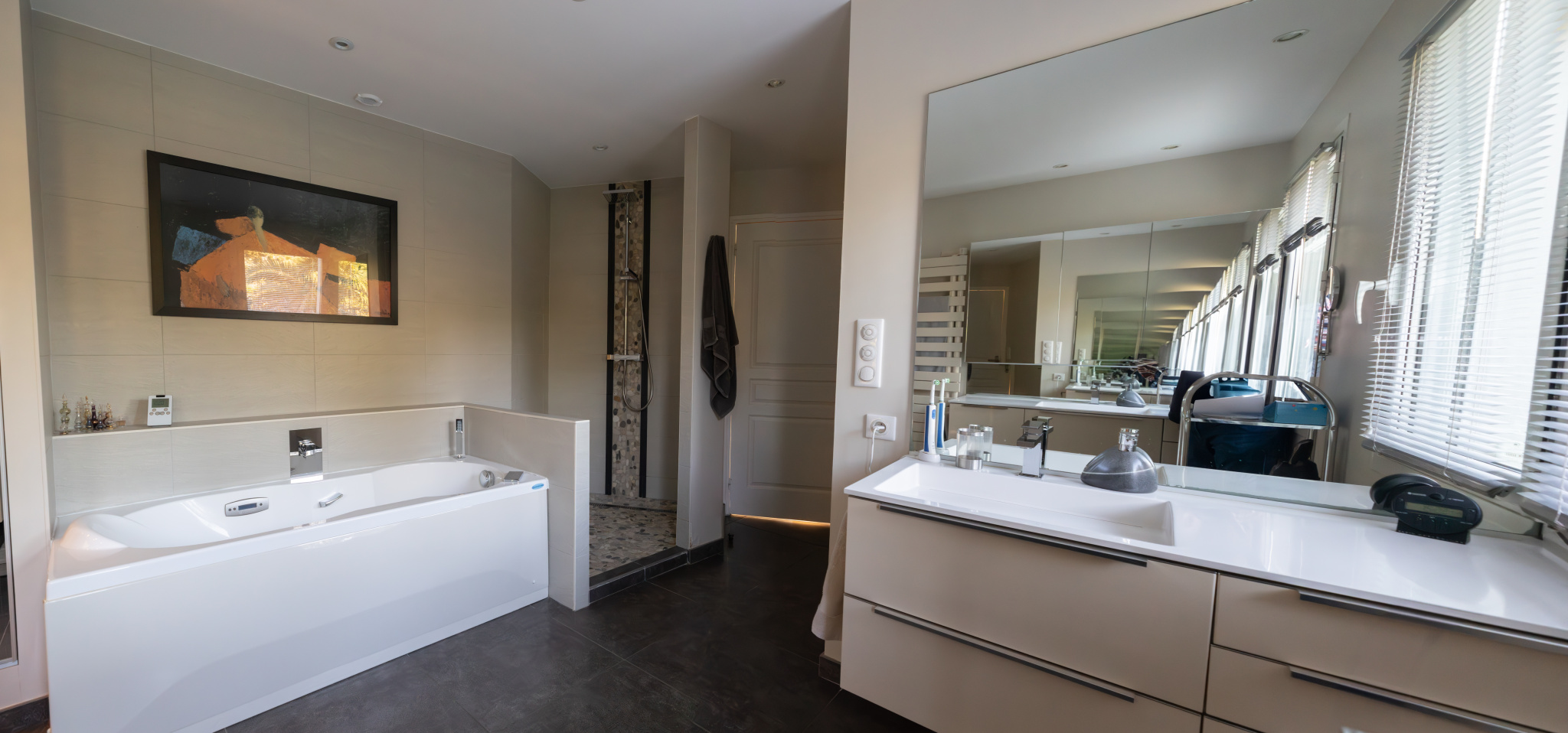 Cette magnifique propriété avec vue sur le Golf de La Baule, lumineuse et orientée sud, vous séduira grâce à ses grands volumes et son environnement calme et verdoyant. Au rez- de-chaussée, un hall d'entrée, un double salon séjour, une cuisine ouverte, une vaste suite parentale de 45 m2. L'ensemble avec de nombreuses ouvertures pour profiter de la terrasse, la piscine, et de la vue sur le golf... A l'étage, un grand palier bureau qui distribue trois chambres, une salle d'eau et une salle de bains. Egalement un double garage avec un atelier, de nombreux stationnements exterieurs, un pool house, une terrasse couverte, un espace toilettes et douche près de la piscine, climatisation dans toute la maison, arrosage automatique...