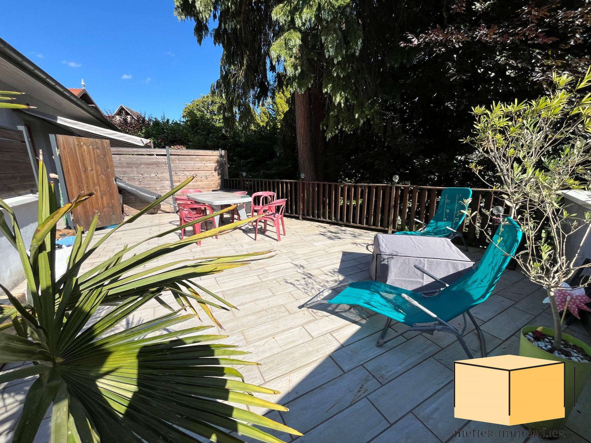 Le second logement est un appartement type 3 de 73.10 m² au sol (62.60 m² carrez). Il s'agit d'un duplex qui se compose d'une pièce de vie avec cuisine équipée ouverte sur séjour, un wc, et une chambre de plain-pied. L'étage comprend 1 chambre et une salle de douche. Immense terrasse attenante sans vis-à-vis (36.5 m²)