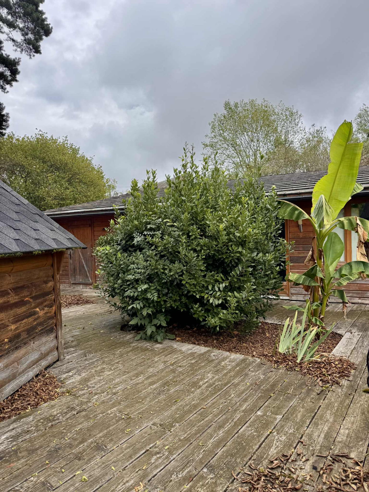 La terrasse, entièrement en bois, représente un atout majeur : fermée et sans vis-à-vis, elle est équipée d'un Kota Grill central et d'arbres soigneusement disposés, créant une ambiance chaleureuse et conviviale.