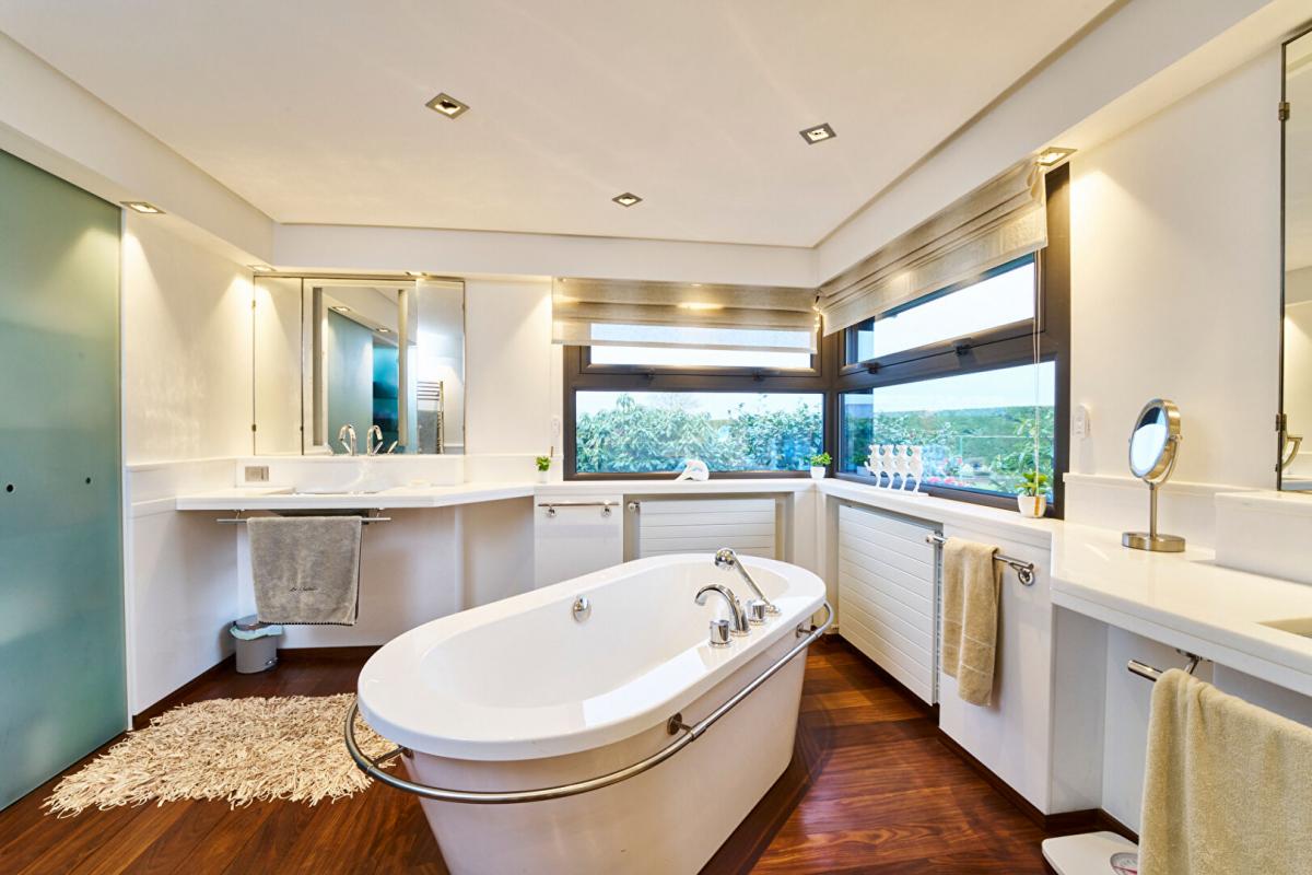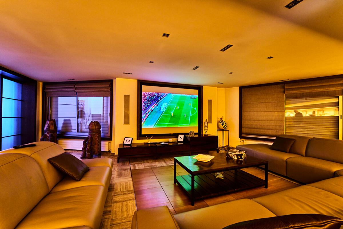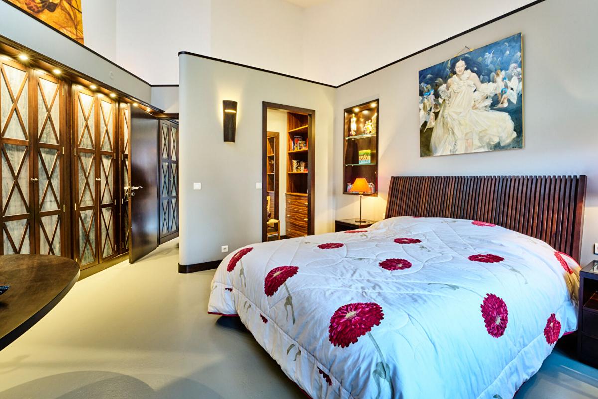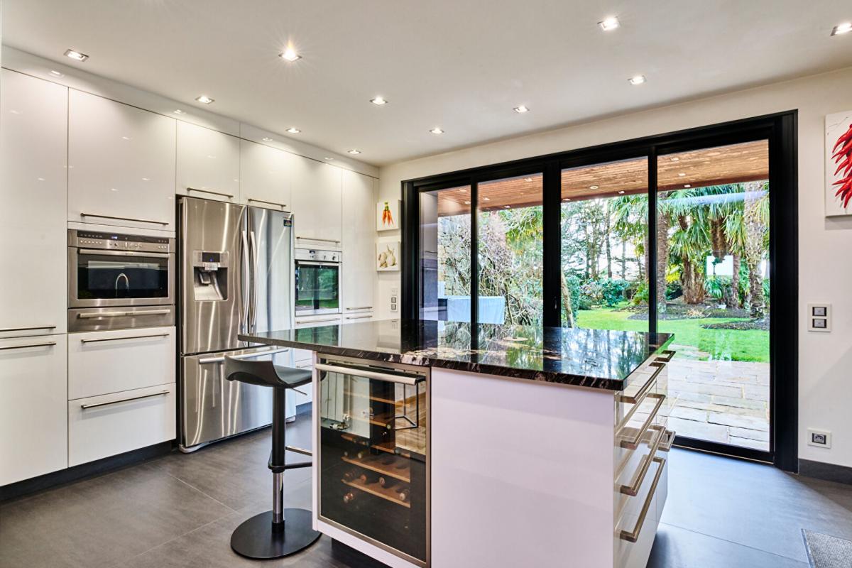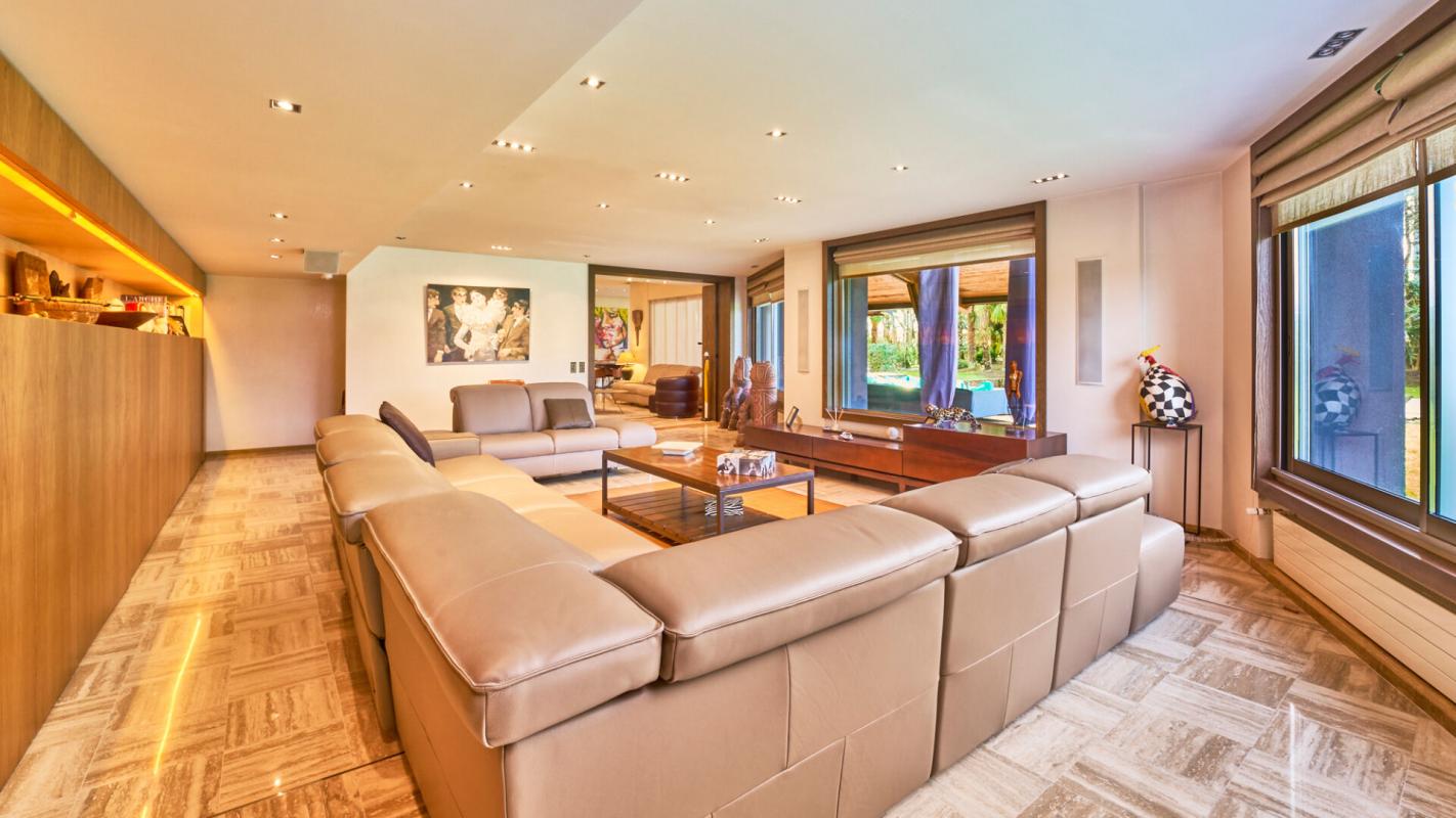 Une fois dans la maison, vous pénétrerez dans un hall d'entrée desservant une vaste pièce de vie lumineuse qui allie beaux volumes et matériaux de qualité. L'ensemble s'organise autour d'une grand espace séjour-cuisine, d'une salle de cinéma de 50 m2 et de deux salons supplémentaires. La pièce à vivre offre une magnifique vue sur le parc et sur les différentes terrasses de la maison. L'espace nuit inclut de belles prestations également : une suite parentale de 38 m2 avec salle de bain et dressing agencés avec de beaux matériaux, trois chambres chacune équipée d'une salle de douche et dressing et une salle de sport de 44 m2 avec salle de douche. A l'étage, vous disposerez d'un très bel espace bureau.