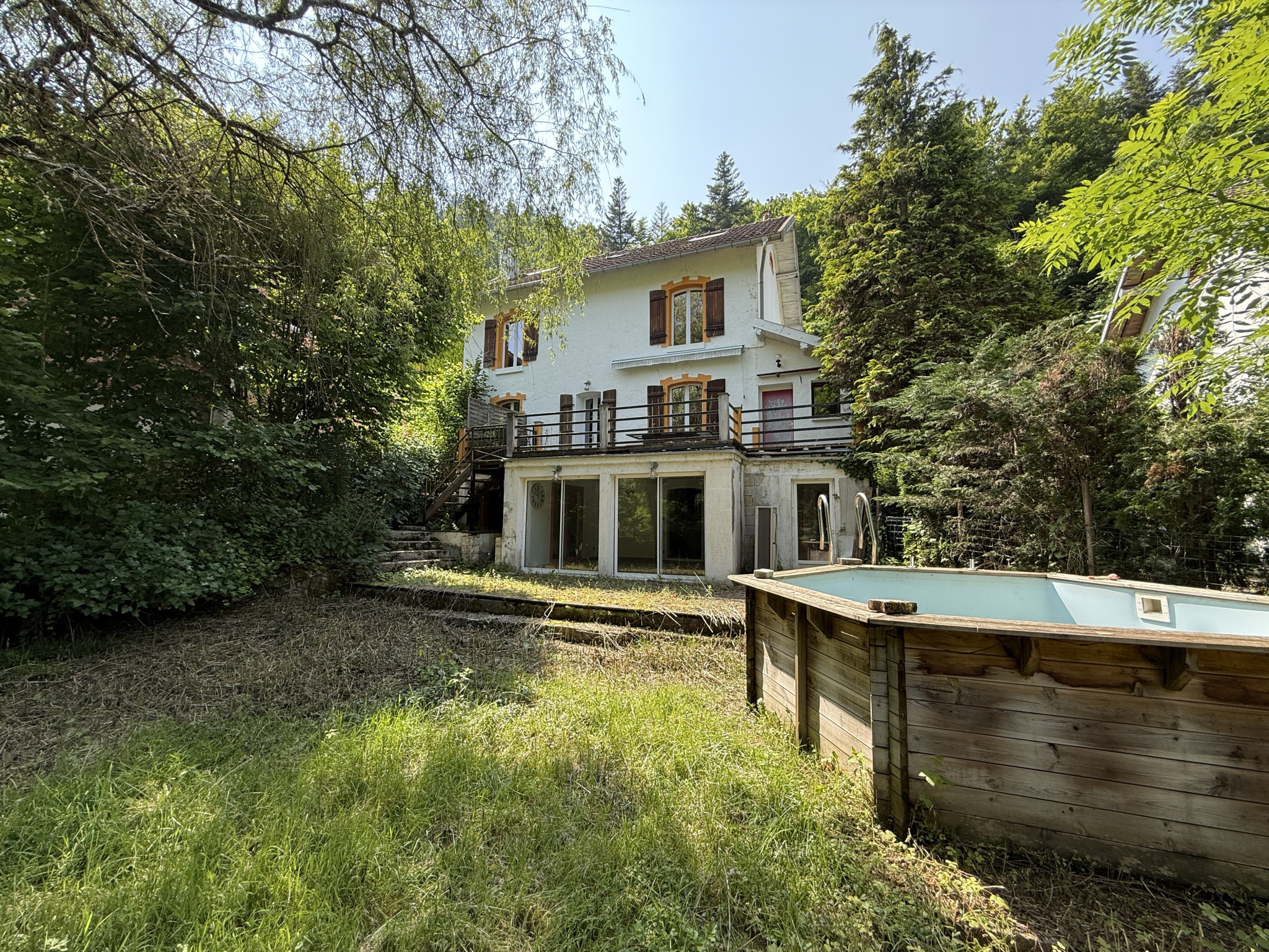 Amoureux de la nature et de la magnifique Vallée du Dessoubre, CE BIEN EST FAIT POUR VOUS ! Située face à la rivière du Dessoubre, l'Agence Francimmo vous propose en exclusivité cette maison avec du cachet, de 160m2 habitables, comprenant: au rez-de-jardin: cuisine d'été, pièce avec accès sur le terrain, WC, buanderie/chaufferie, cave et une chambre. Au rez-de-chaussée surélevé: cuisine, salon-séjour avec poêle à bois et accès sur une agréable terrasse, salle d'eau avec WC. Au 1er étage: 2 chambres, grand salon et WC. Au 2ième étage: 2 chambres mansardées. En annexe: petit garage accolé à la maison. Le terrain de 388m2 dispose également d'une piscine hors sol. Ce bien ne pourra que vous séduire par sa surface ainsi que sa situation. Travaux à prévoir. RARE SUR LE SECTEUR, contactez-nous pour venir visiter.