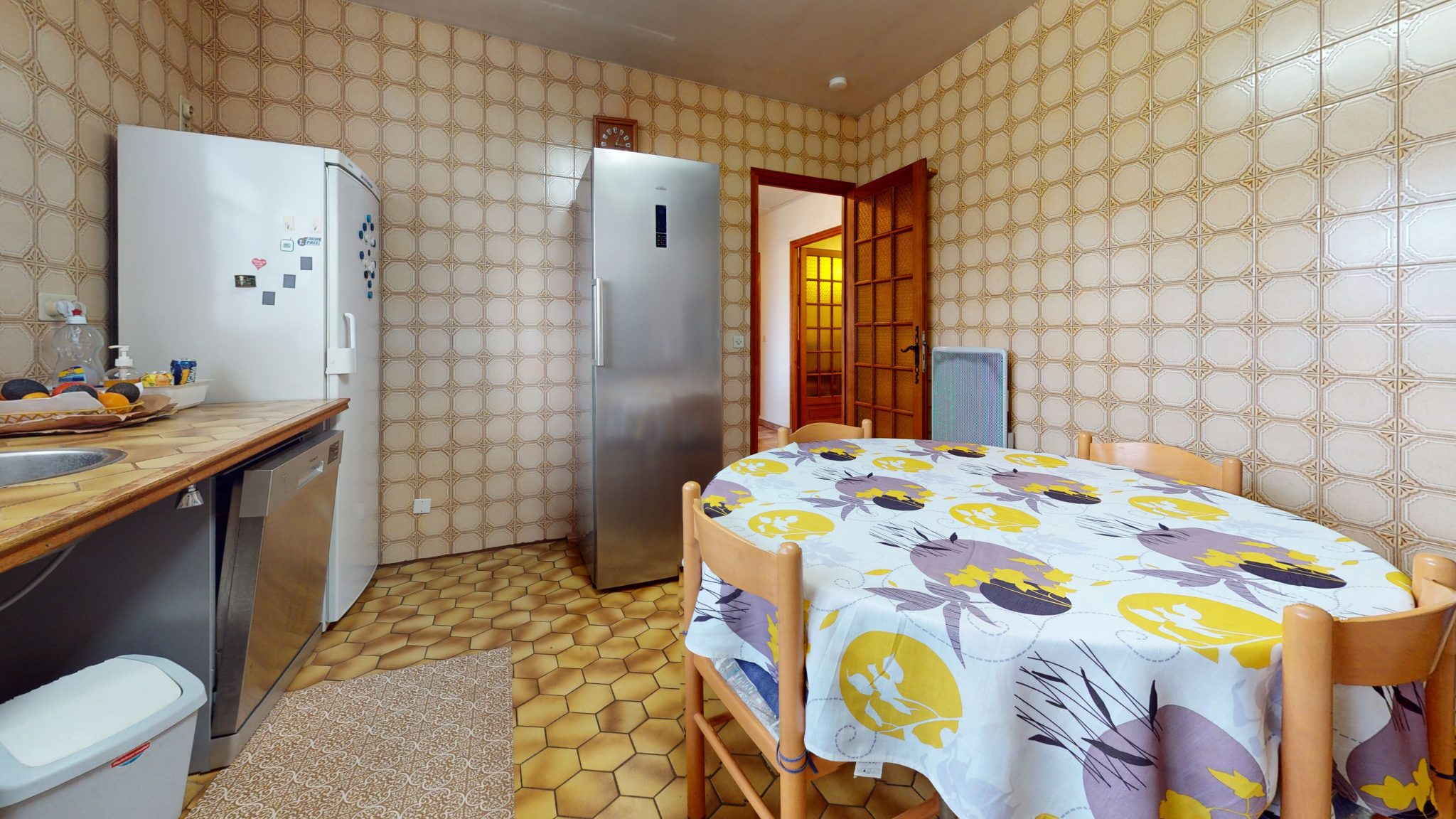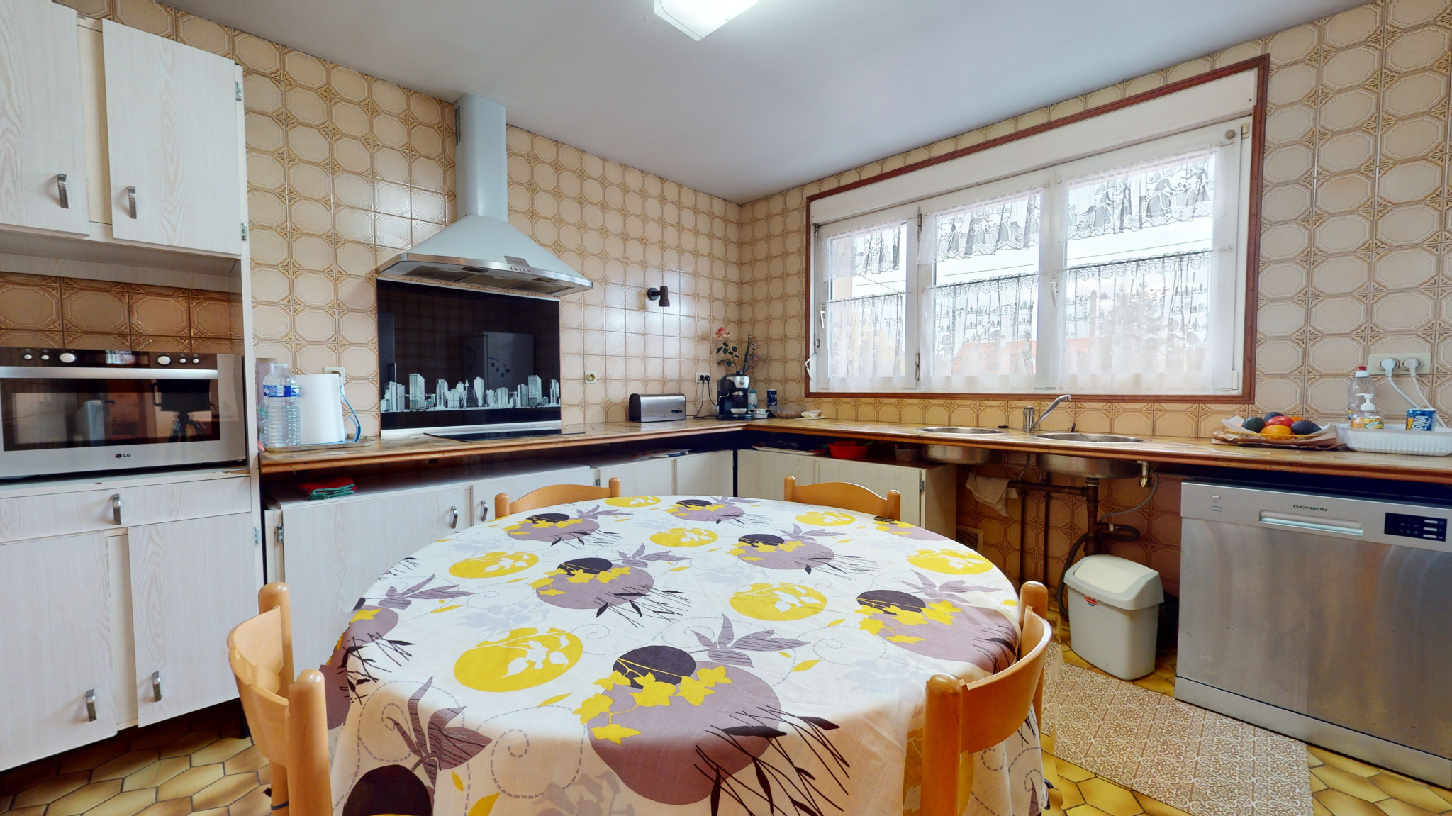 Etage : Palier, séjour de 50 m2 avec cheminée, une grande baie vitrée coulissante donnant sur une terrrasse filante exposée Sud, avec store-banne, une grande cuisine, chambre, une grande salle de bains, wc.
