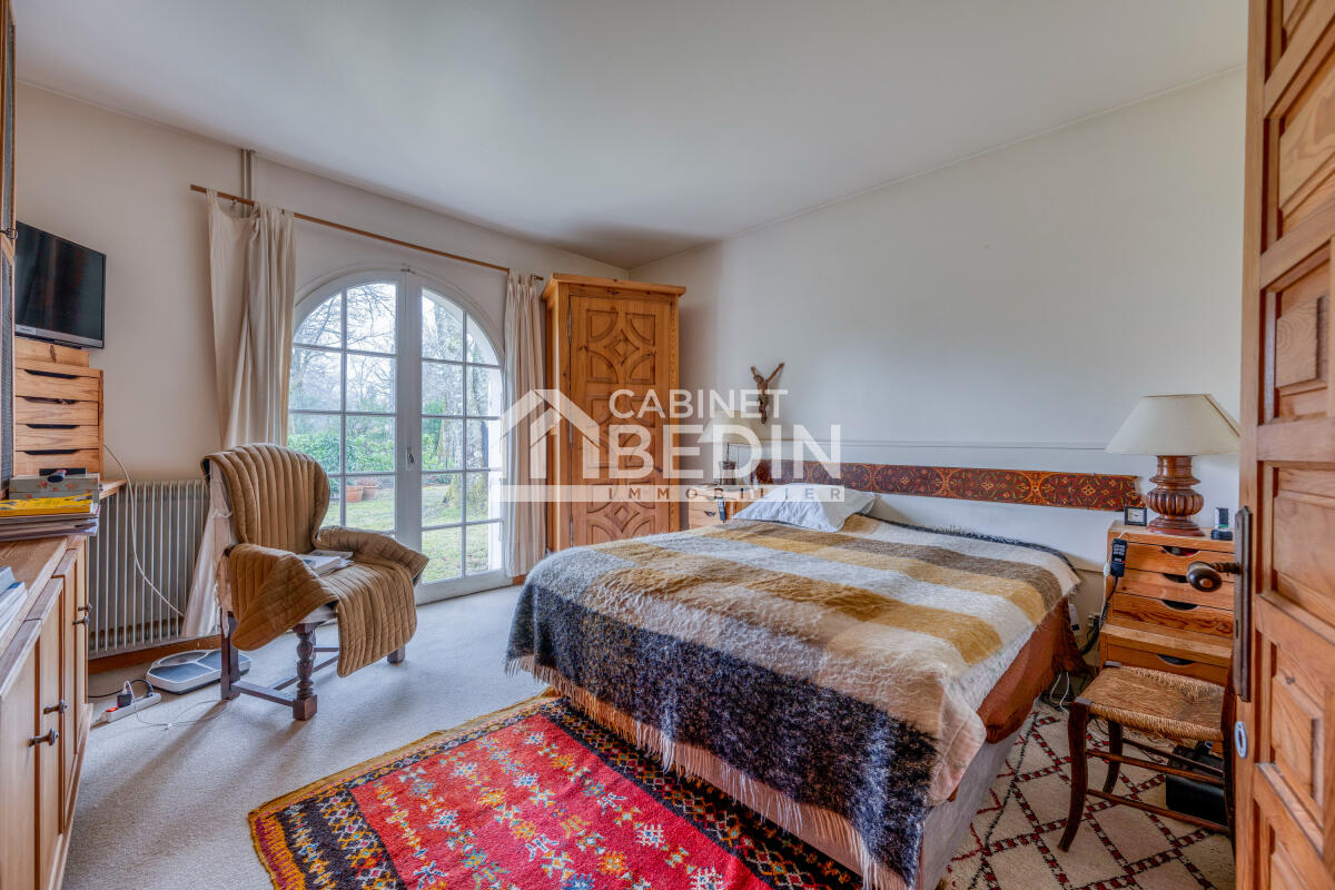 Maison 6 pièces à Cestas avec grand jardin calme. Nichée dans un quartier très résidentiel de Cestas et à proximité du bourg, venez découvrir cette maison de 170m² entièrement de plain pied. Elle se compose d' un séjour exposé Sud avec accès direct sur terrasse intime et jardin arboré, une grande cuisine donnant sur une seconde terrasse, quatre chambres spacieuses, bureau, salle de bains et salle d' eau, buanderie et cellier. Vous serez séduits par son grand terrain plat de plus de 1600m² au calme. Bien rare sur le secteur, une visite s' impose !. Les informations sur les risques auxquels ce bien est exposé sont disponibles sur le site Géorisques : www. georisques. gouv. fr. Montant estimé des dépenses annuelles d?énergie pour un usage standard : entre 2840 et 3930 Euros/an (année de référence 2022)