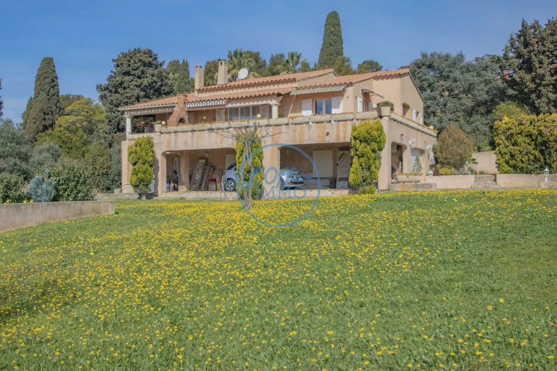 Chez l'OFFICE-IMMO : Idéal promoteur ou marchand de biens : CU opérationnel accepté pour 8 apts, 600 m² d'emprise au sol et une SDP de 800 m² maxi. Spacieuse villa vue mer à 400 m de la mer sur la commune de Carqueiranne, développant environ 287 m² dont 152 m² partiellement aménagés au rez-de-chaussée, celle-ci offre à l'étage : entrée, séjour et cuisine US donnant sur terrasse plein sud, 4 chambres (22,72 m², 19,42 m², 13,62 m² et 10 m²), grande salle d'eau, dégagement et toilettes. Le tout sur une parcelle paysagée de plus de 2400 m² avec piscine (à finir, gros oeuvre déjà réalisé). Vue mer et plages à pied !!! Classe énergie : D. Rèf : 2610-P. Honoraires charges vendeur. Prix : 1.495.000 euros.