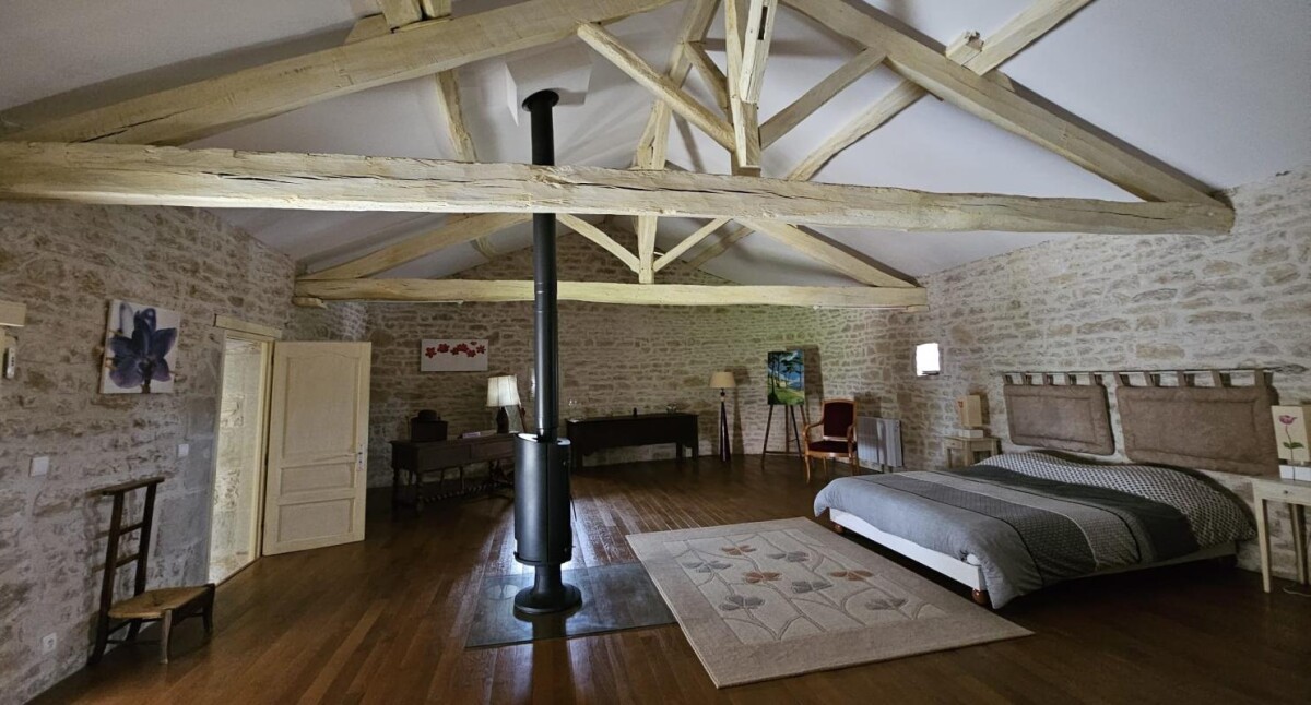 À l'étage, un ensemble de cinq chambres dont la suite parentale de près de 38m2 séduit par la taille, sa hauteur sous plafond et sa salle d'eau privée. Avec dans son prolongement, deux chambres supplémentaires, dont une grande chambre équipée d'un poil à bois. Deux autres chambres avec une salle de bain offrent un espace parfait pour accueillir famille et invités.