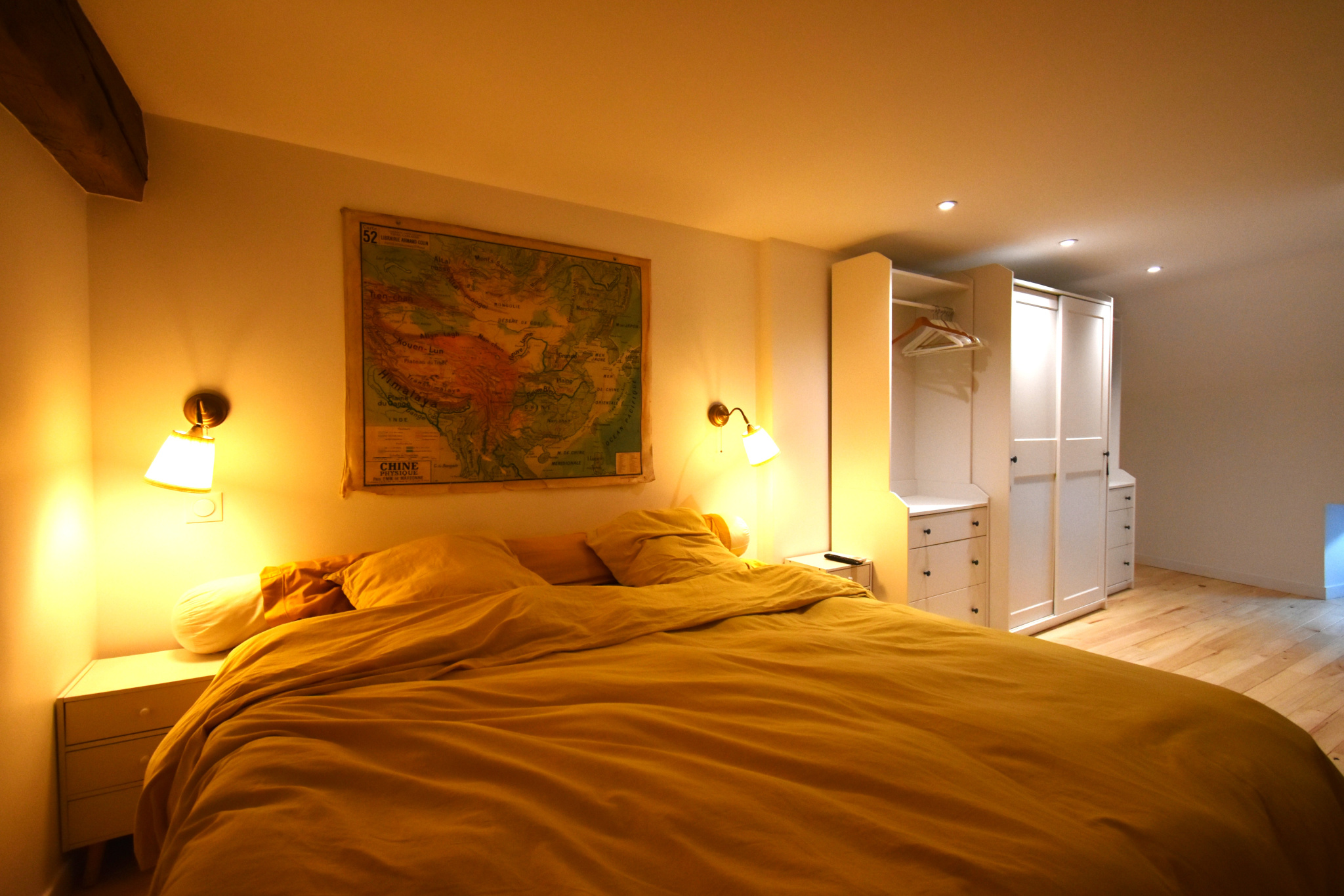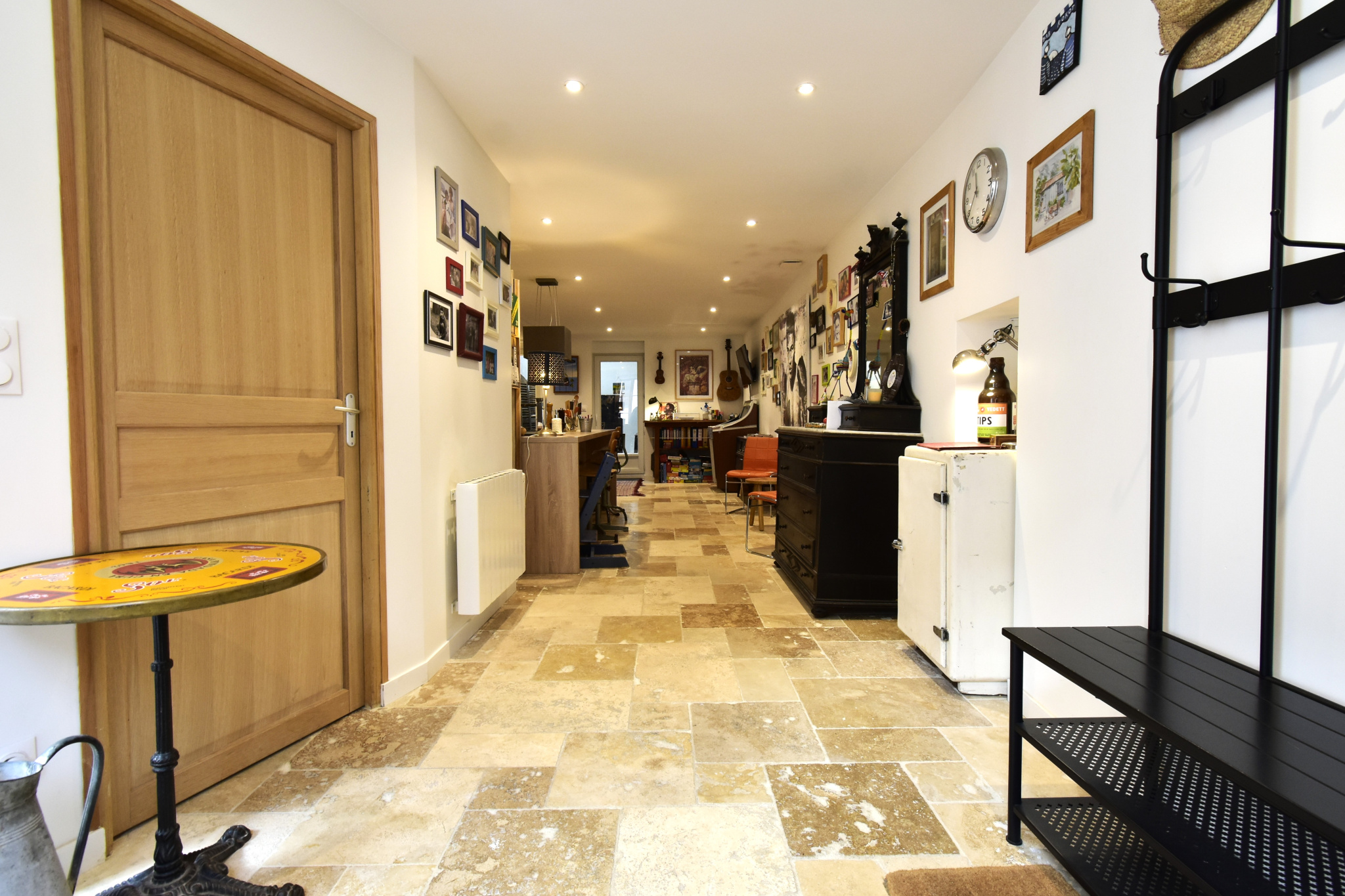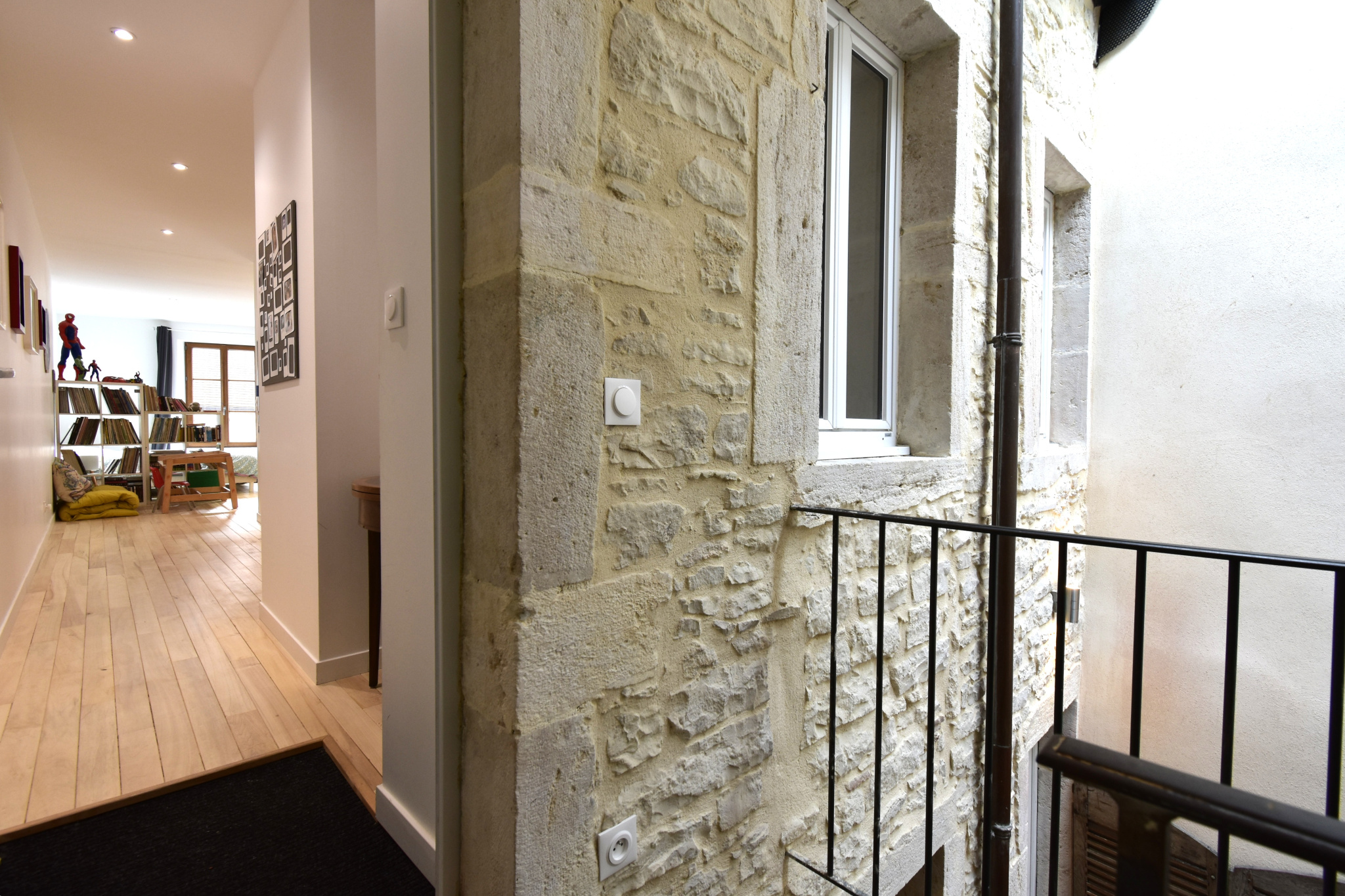 11464 BEAUNE Au coeur du centre historique. Jolie maison de ville atypique rénovée comprenant : entrée, cuisine entièrement aménagée et équipée ouverte sur le salon, Patio avec toit vitré électrique pour les journées d'été, coin bar, buanderie avec toilettes. Au premier étage, deux chambres, salle d'eau avec toilettes. Au troisième étage, espace bureau, salle d'eau avec toilettes, une chambre climatisée, une chambre en mezzanine ouverte.