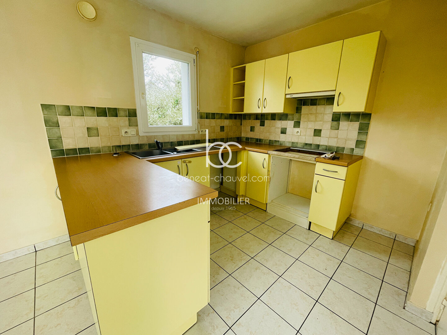 Elle comprend au rez-de-chaussée : Salon/séjour, cuisine simple, chambre avec salle d'eau et wc et garage.