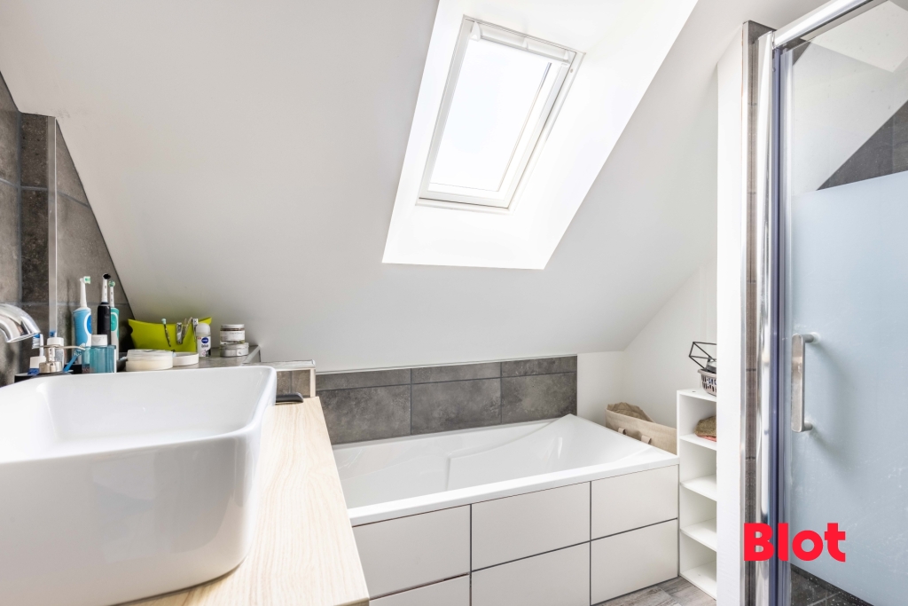 Quatre belles chambres dont 2 avec placards, une salle de bains avec douche et baignoire et un WC.