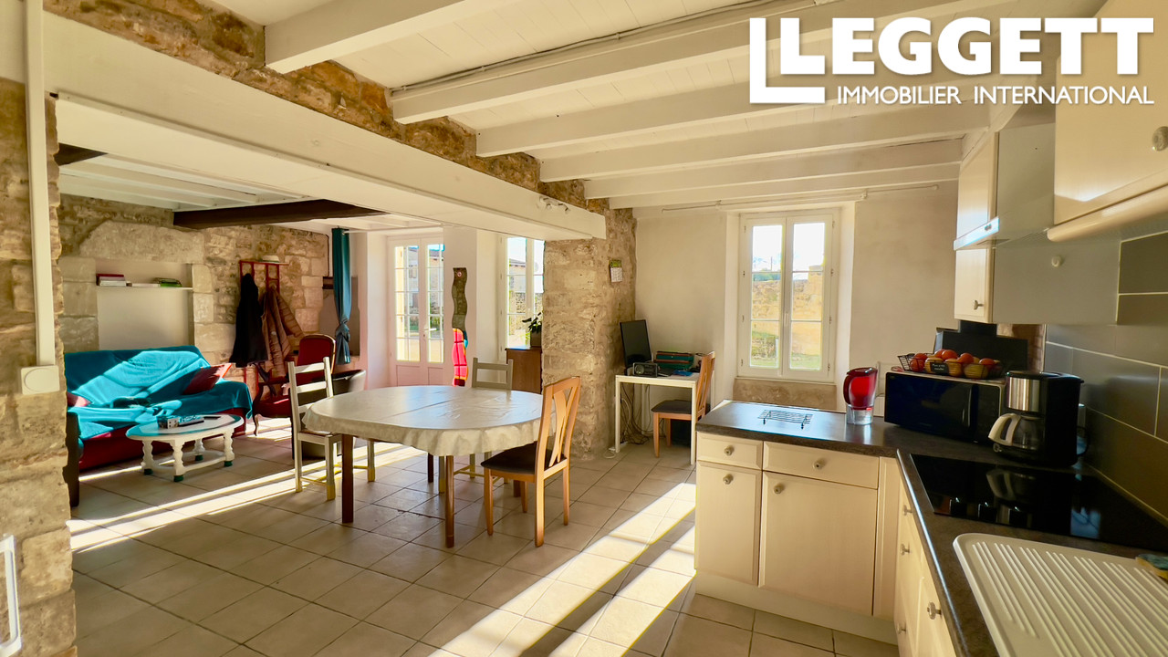 Cette propriété Charentaise en pierre se compose de 2 bâtiments séparés:- 1. Maison indépendante de 2 étages avec cuisine, WC, 2 chambres et salle d'eau.