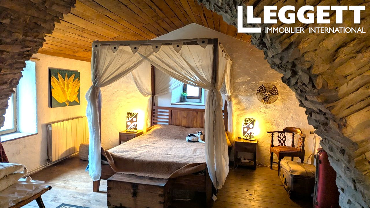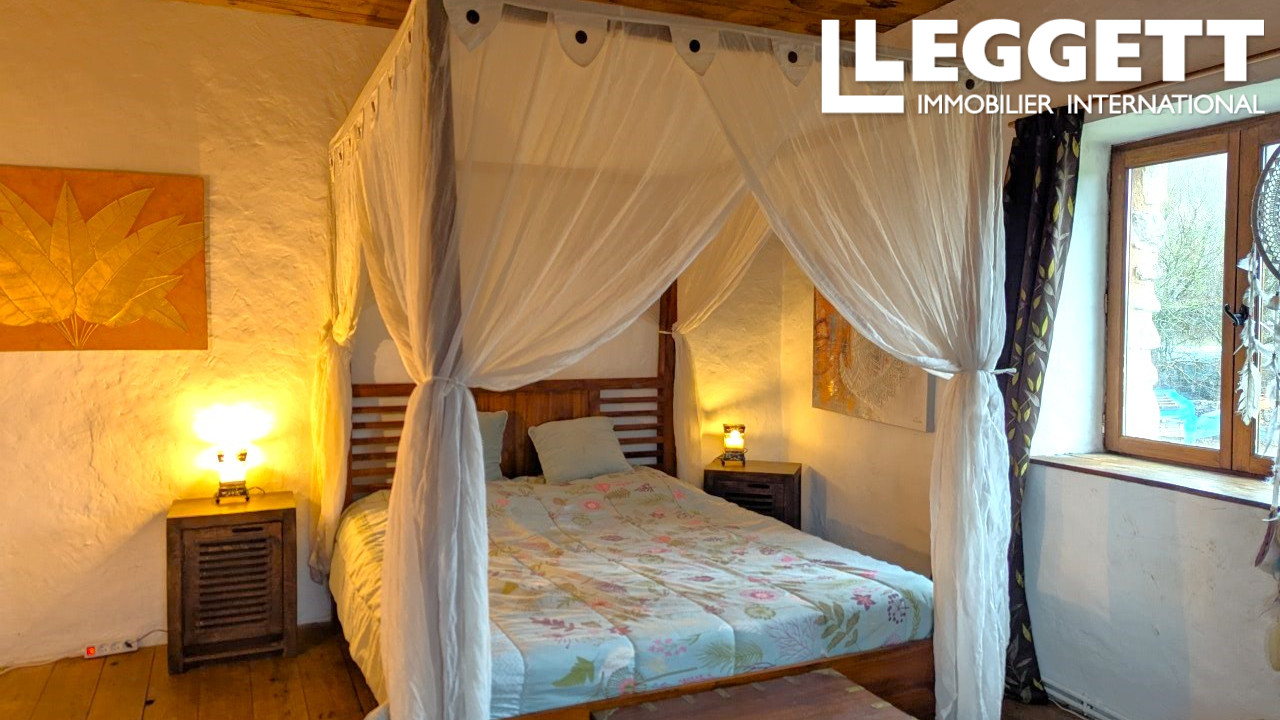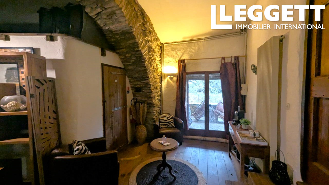 La cuisine/salle à manger a des arches en pierre voûtées, de hauts plafonds, un poêle à bois et des grandes portes-fenêtres qui donnent sur la terrasse. A côté de la cuisine se trouve un autre grand salon avec plancher en bois, un poêle à bois et accès au jardin. Au rez-de-chaussée, il y a deux autres dortoirs avec deux salles de bains et un accès indépendant au jardin plus un espace buanderie.