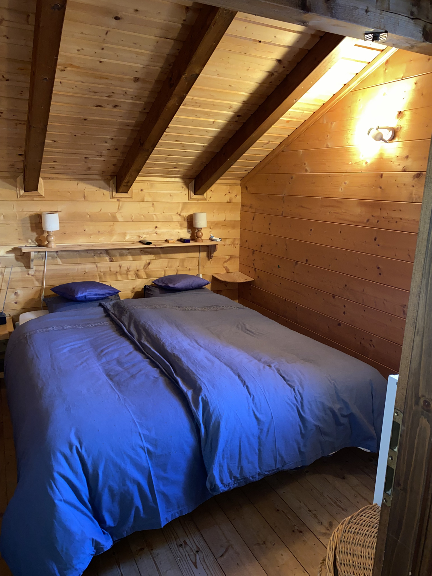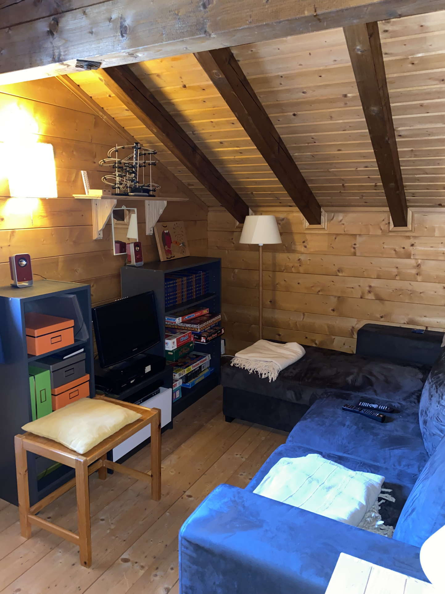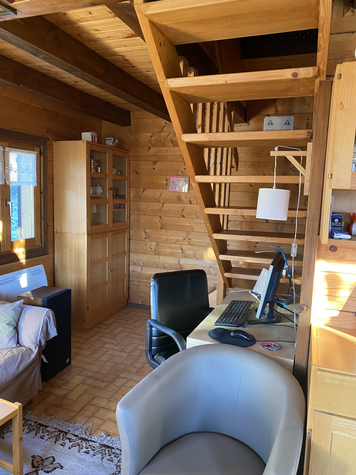 En Exclusivité sur les hauteurs d'Habère-Lullin un Chalet en copropriété horizontale de 1986 d'une surface utile de 57 m2 dont 47 m2 habitable loi carrez comprenant une entrée, cuisine ouverte sur salon/séjour, salle de bains, wc, placards et balcon; à l'étage 2 chambres et un coin nuit sous combles.