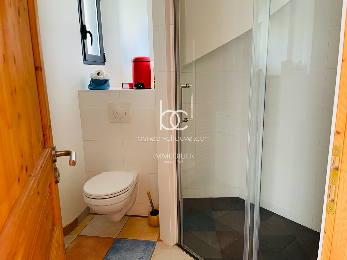 Entrée, salon avec poêle, coin salle à manger, cuisine, trois chambres dont deux avec leur salle d'eau/wc. Une pièce attenante à la 3ème chambre dispose de toutes les arrivées/évacuations d'eau pour créer une salle d'eau.