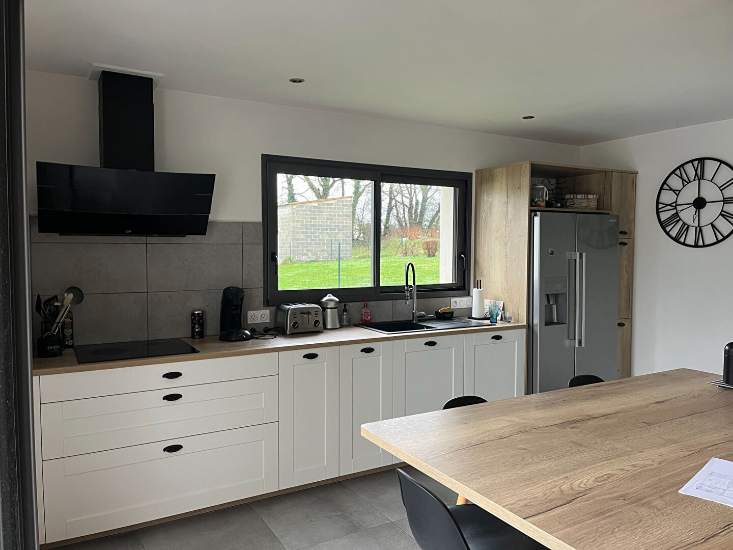 - Au rez-de-chaussée : une belle entrée avec des rangements, donnant sur un grand salon séjour exposé plein sud, agrémenté d'un poêle à bois, une cuisine ouverte aménagée/équipée (four, plaque de cuisson à induction, hotte, micro-onde, lave-vaisselle, réfrigérateur),un cellier, des sanitaires avec lave-mains, une suite parentale avec dressing et salle d'eau privative vient compléter ce niveau.