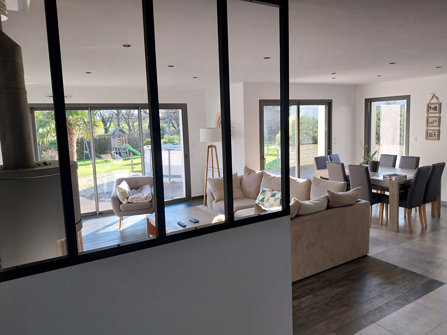 Le tout sur un grand terrain d'environ 1 140m² entièrement clôturé avec mur, grillage et portail électrique ainsi qu'une grande terrasse en bois exposé plein sud.