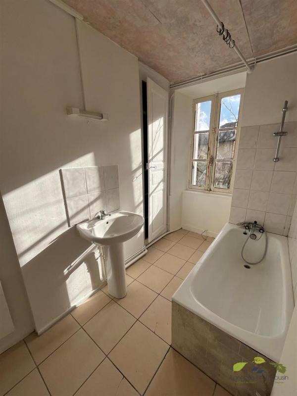 - 1er étage, un appartement T3 avec cuisine équipée neuve, salle de bains (à rafraîchir), wc, deux chambres (actuellement loué 400 Euros CC).