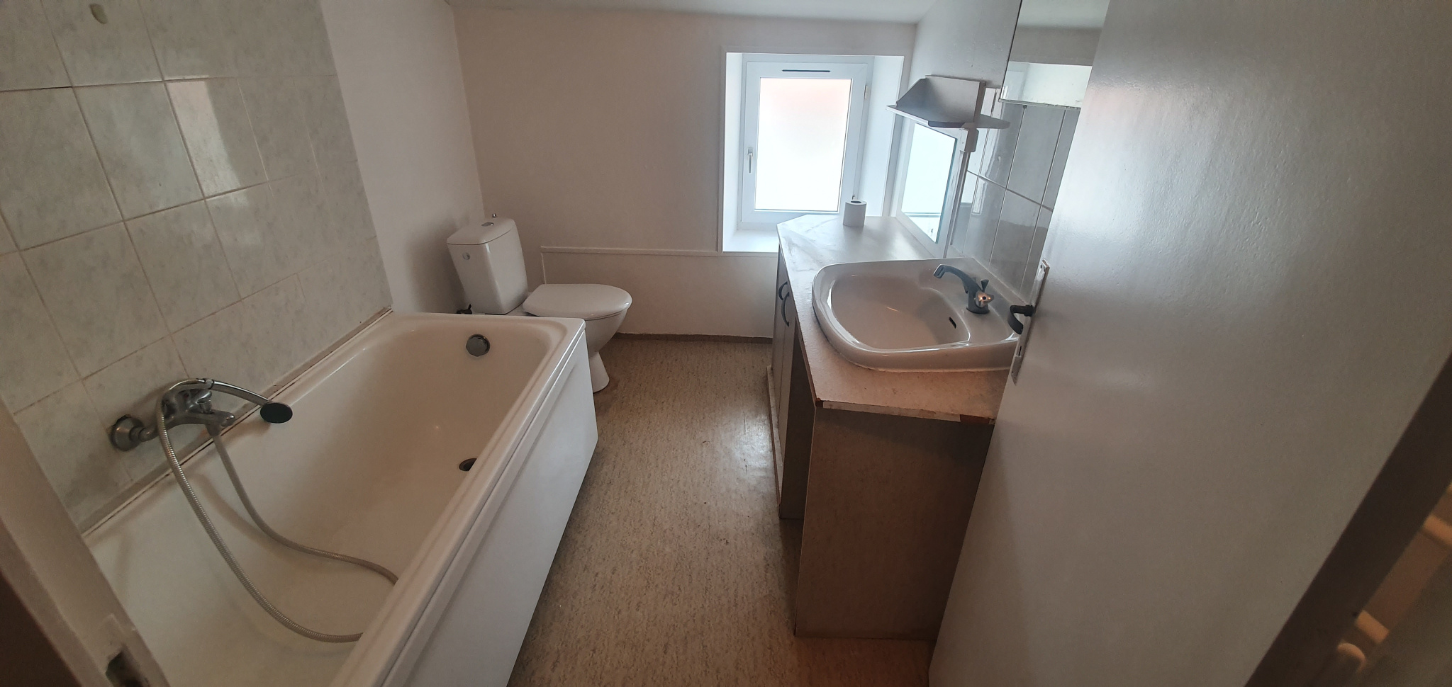A l'étage, palier, 2 grandes chambres, salle de bain/WC.