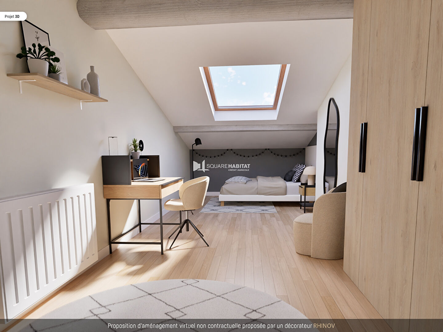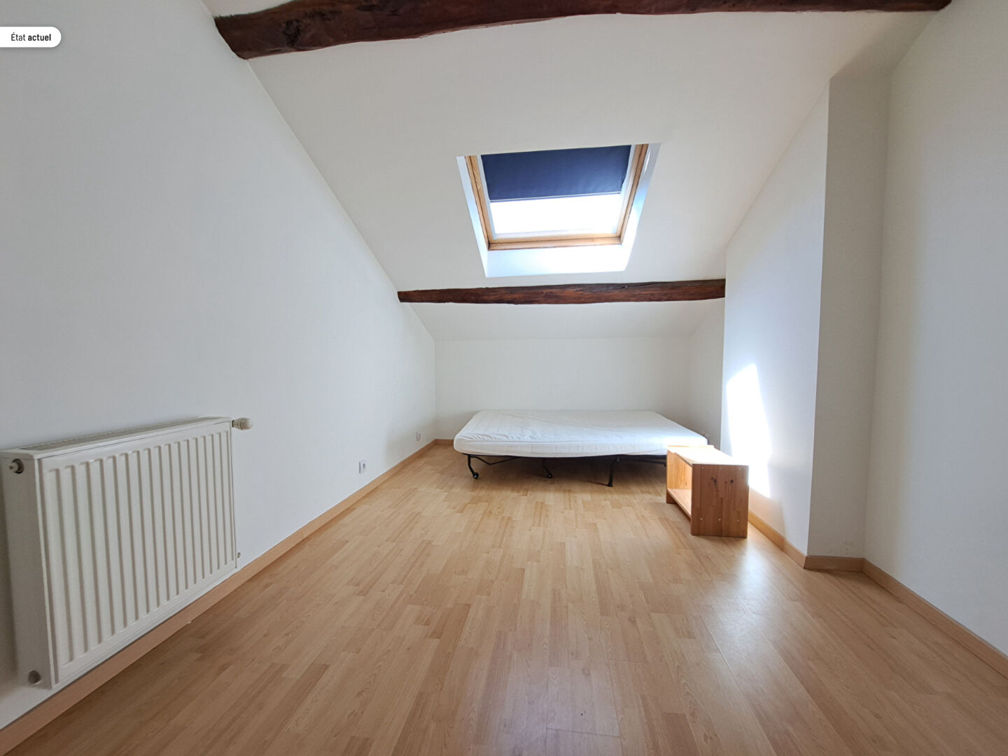 À l'étage, le palier dessert deux chambres mansardées avec VELUX, dont une en sous-pente, et donne accès à des combles aménageables de 43 m² offrant un potentiel d'agrandissement intéressant.
