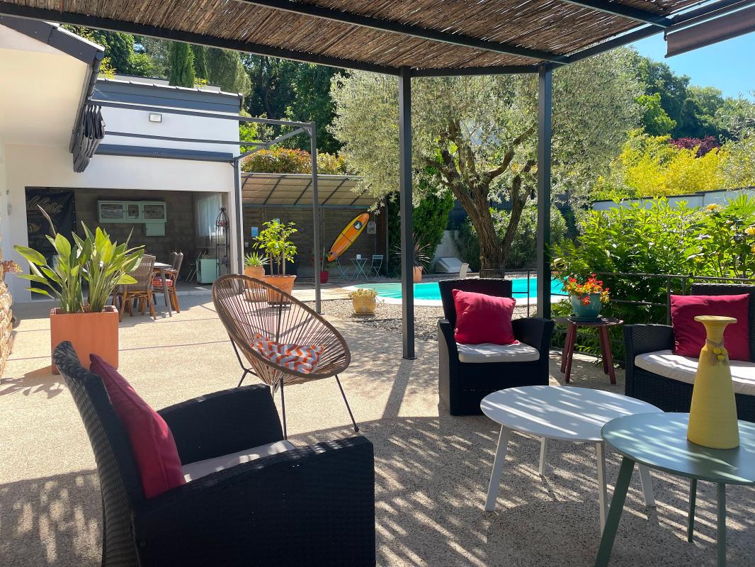 En extérieur, vous profiterez d'une belle piscine avec terrasse couverte exposé plein SUD. Une belle vue vous attend.