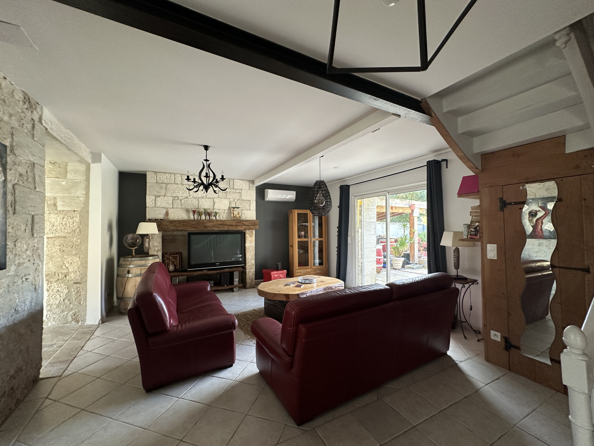 Cette maison principale en pierres vous invite à découvrir son confort, elle comprend une pièce de vie de plus de 80m2, quatre chambres à l'étage avec une vue sur la piscine.