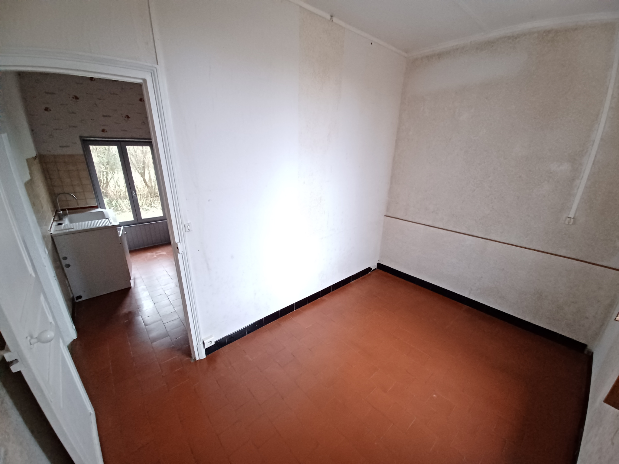 Proche Beffes, maison en pierres d'environ 58m2 habitables (ref.9597), T3, comprenant de plain pied : la véranda d'entrée, le séjour avec conduit de cheminée, la cuisine séparée avec tomettes, deux chambres, une salle d'eau et WC séparés. Ecurie attenante. Greniers aménageables. Pas de chauffage. Maison raccordée au tout à l'égout.