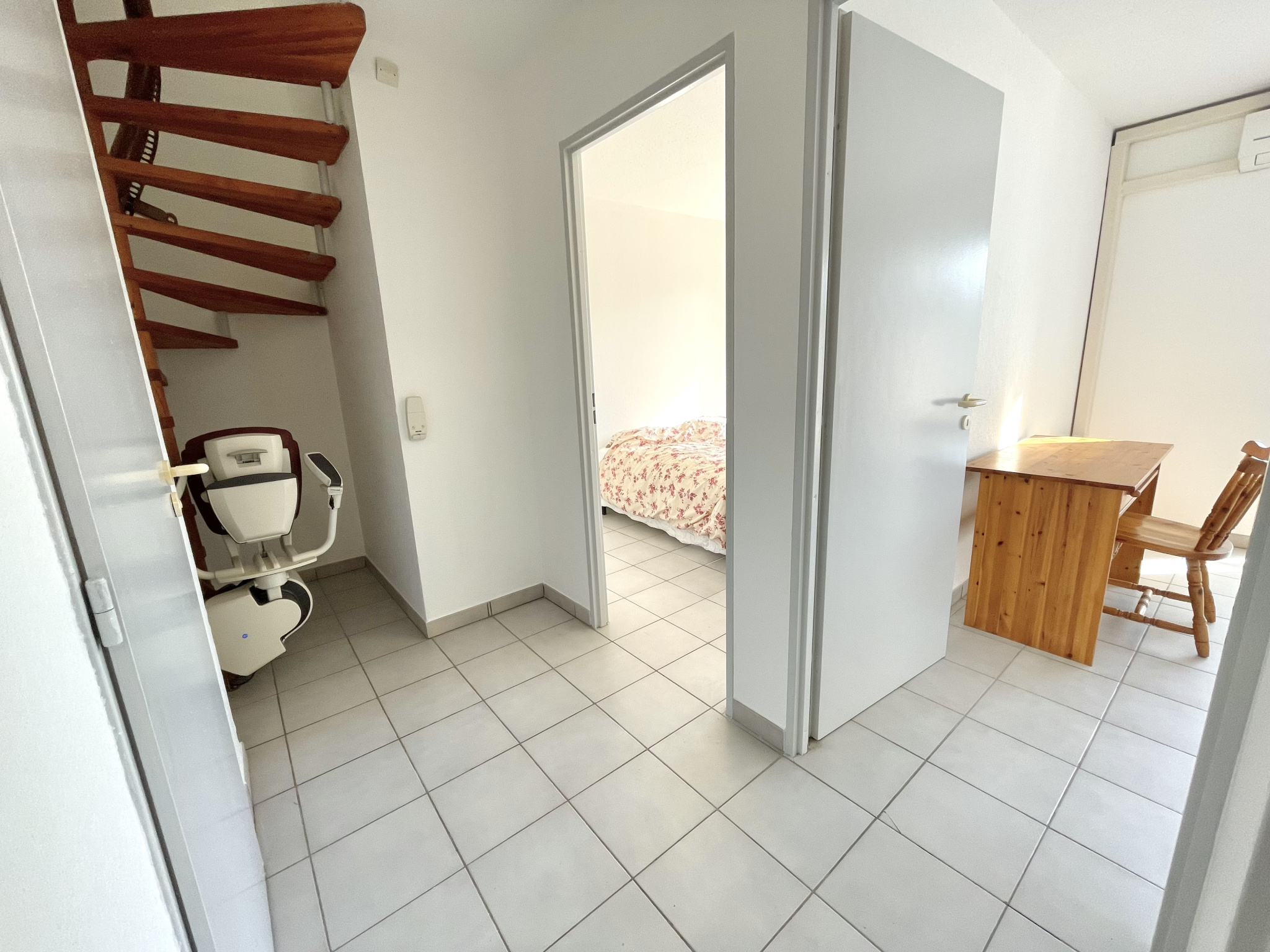 À l'étage, vous découvrirez deux chambres doubles spacieuses, chacune avec placards intégrés, dont l'une de plus de 10 m2, offrant un accès direct à une seconde terrasse. Un véritable atout pour profiter pleinement du climat méditerranéen ! Une salle de bain fonctionnelle ainsi qu'un escalier avec assistance viennent compléter cet espace nuit. 2 terrasses au total de 17m2.
