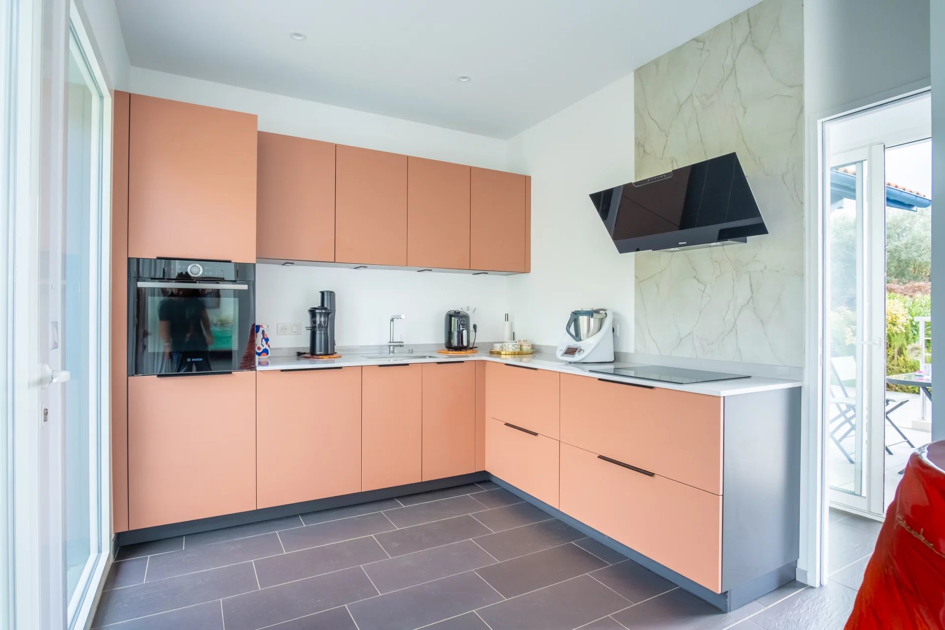 Aux portes de Ciboure/St Jean de Luz - Située dans un cadre privilégié avec une vue imprenable sur les montagnes, cette magnifique maison contemporaine d'environ 300m² habitables, complétée par un garage de 85m² et une cave de 37m², repose sur un terrain paysagé de 3 000m². Construite en 2015 et 2021, elle est en parfait état et offre un confort moderne dans un environnement calme et verdoyant.