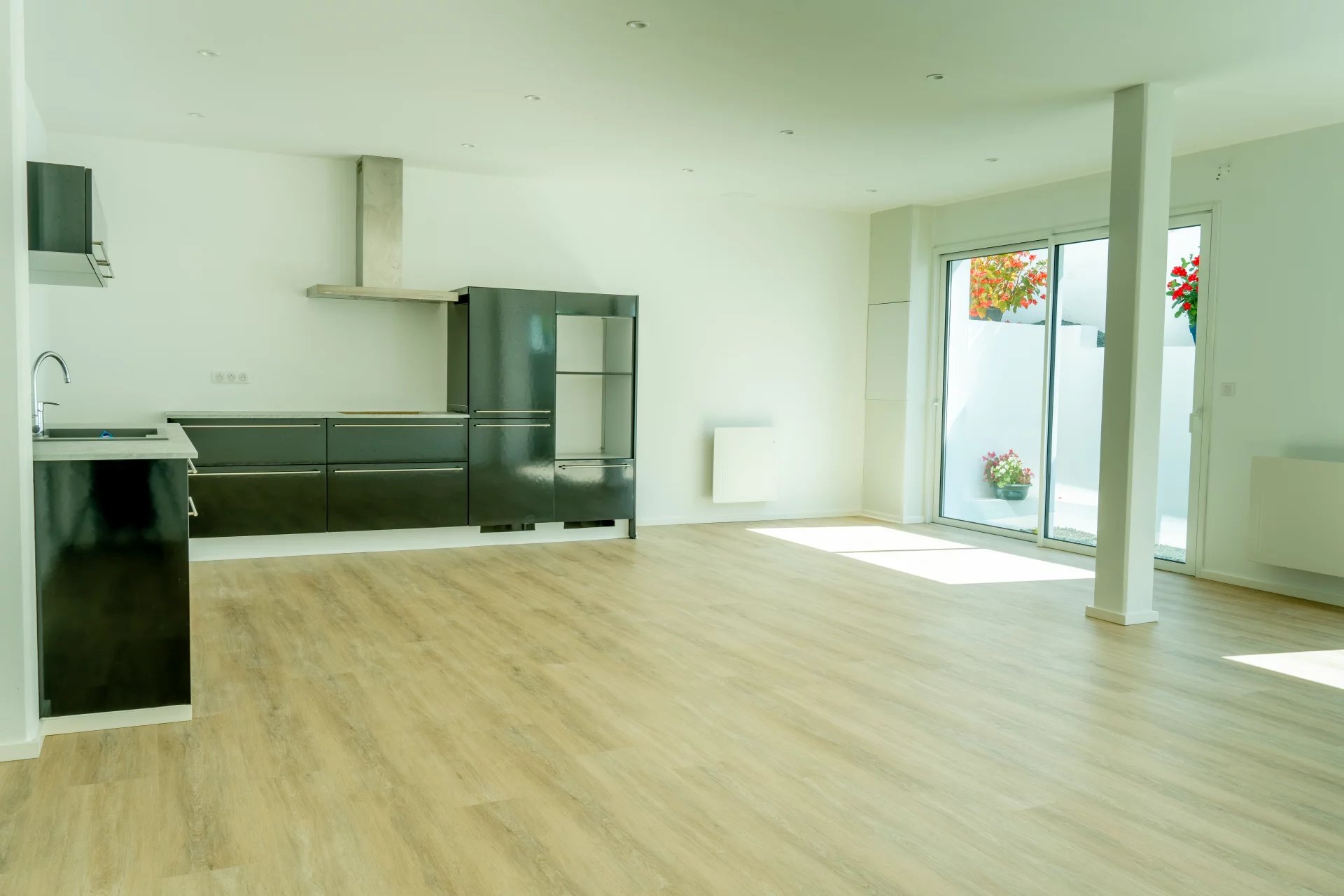 - En rez-de-jardin, un appartement indépendant de 70 m² comprenant un grand séjour avec cuisine, une chambre et une salle d’eau avec WC.