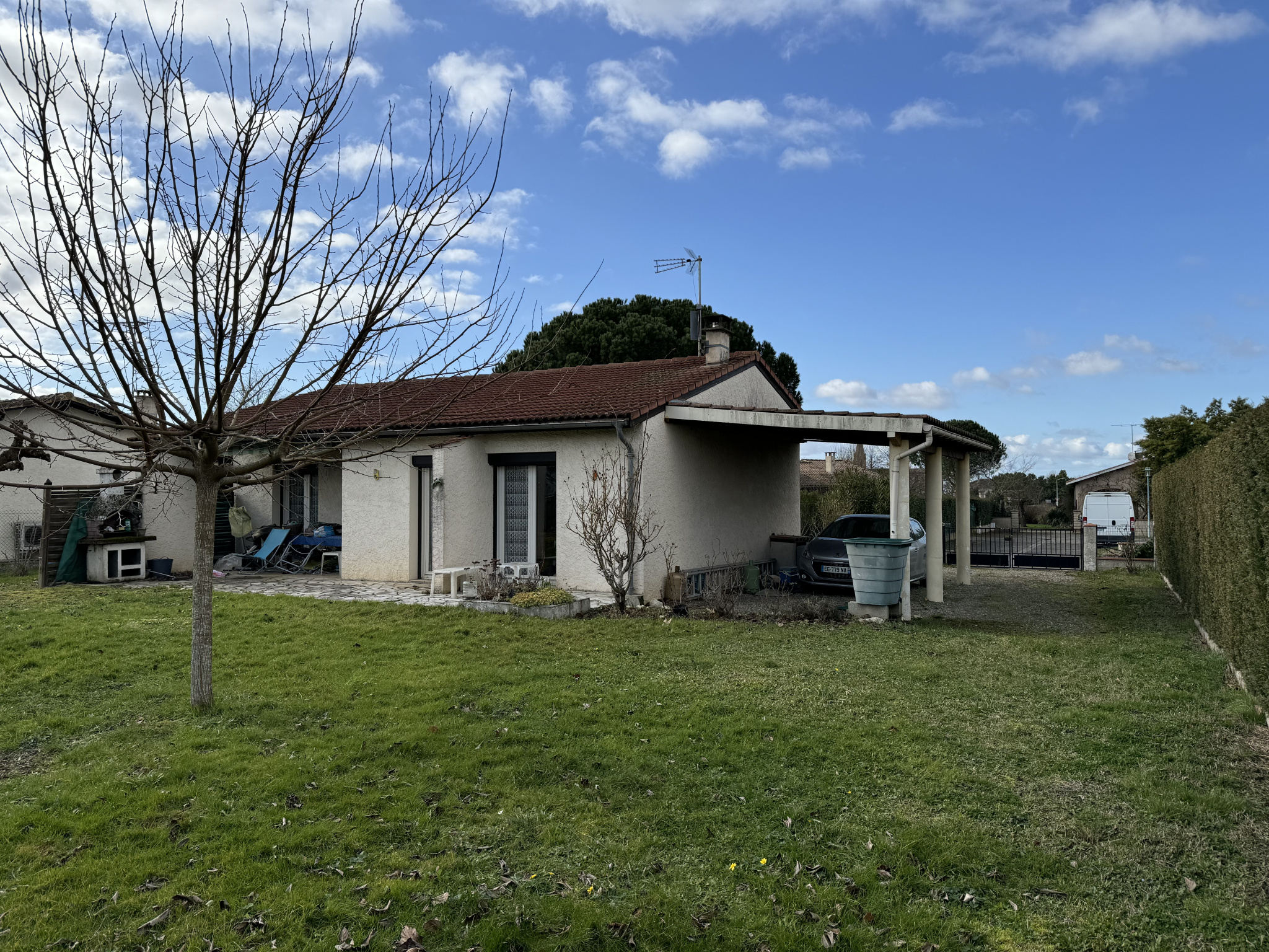 A 7 km de CASTELSARRASIN, à Garganvillar, une maison des années 80 de plain-pied de 74 m2 env. de 4 pièces comprenant une entrée, une cuisine aménagée, un salon séjour avec cheminée insert et accès sur la terrasse, trois chambres, une salle d'eau et un wc séparé.