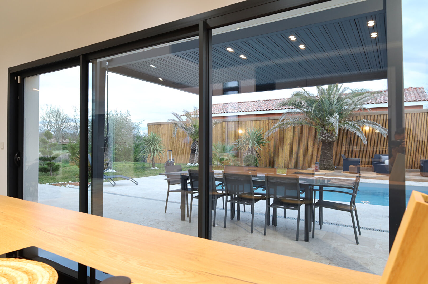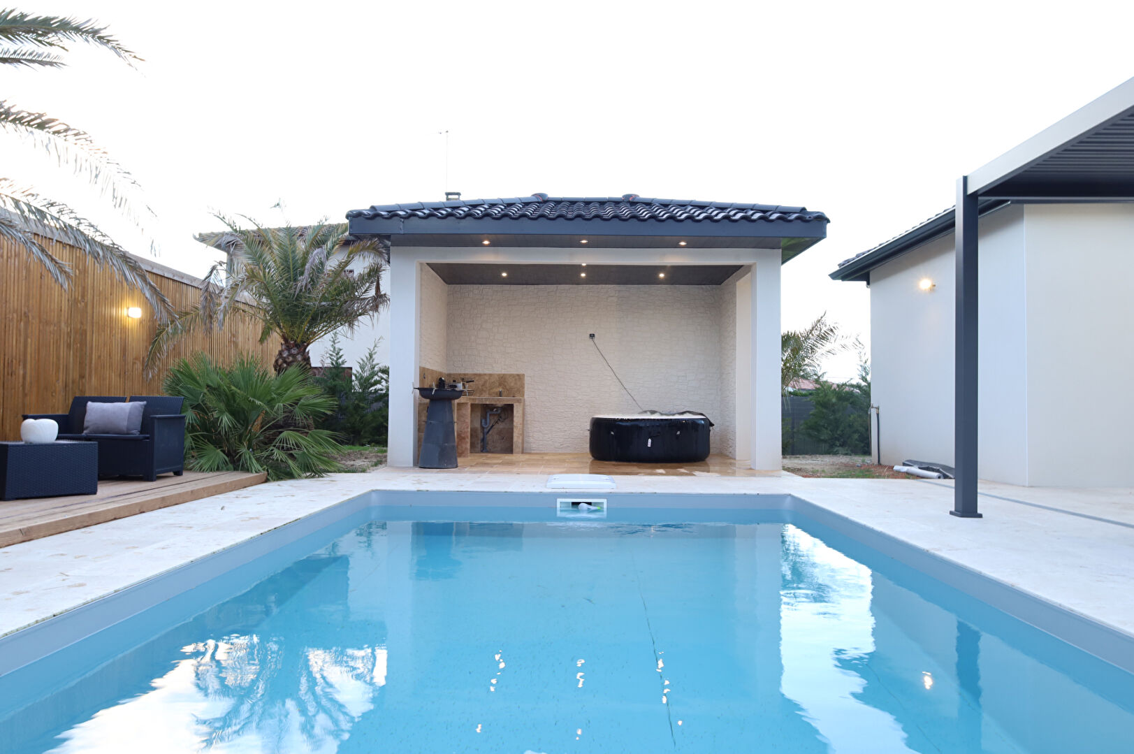 Superbe villa récente aux finitions soignées, nichée dans un cadre paisible et verdoyant. Dès l'entrée, vous serez charmé par sa lumineuse pièce de vie traversante, où cuisine américaine, salon et salle à manger s'harmonisent parfaitement. De larges baies vitrées s'ouvrent sur une magnifique terrasse avec piscine et pool house.