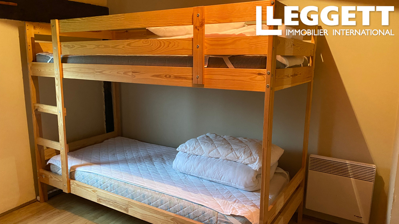 La maison se compose d'une cuisine/salon/salle à manger ouverte et d'une salle de bains avec baignoire et douche séparée au rez-de-chaussée, ainsi que d'une chambre et d'une grande mezzanine pouvant servir de chambre supplémentaire à l'étage. Le chauffage est assuré par un poêle à bois.