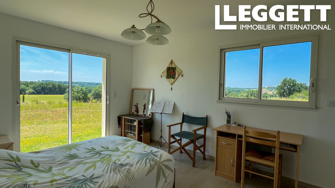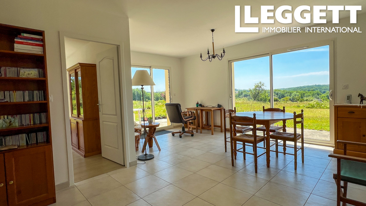 L'espace de vie est lumineux et confortable, avec de grandes baies vitrées pour profiter de l'environnement. L'espace pour créer des chambres supplémentaires dans le garage attenant. Eymet 12km, Loubes Bernac 4km et Bergerac a seulement 23km