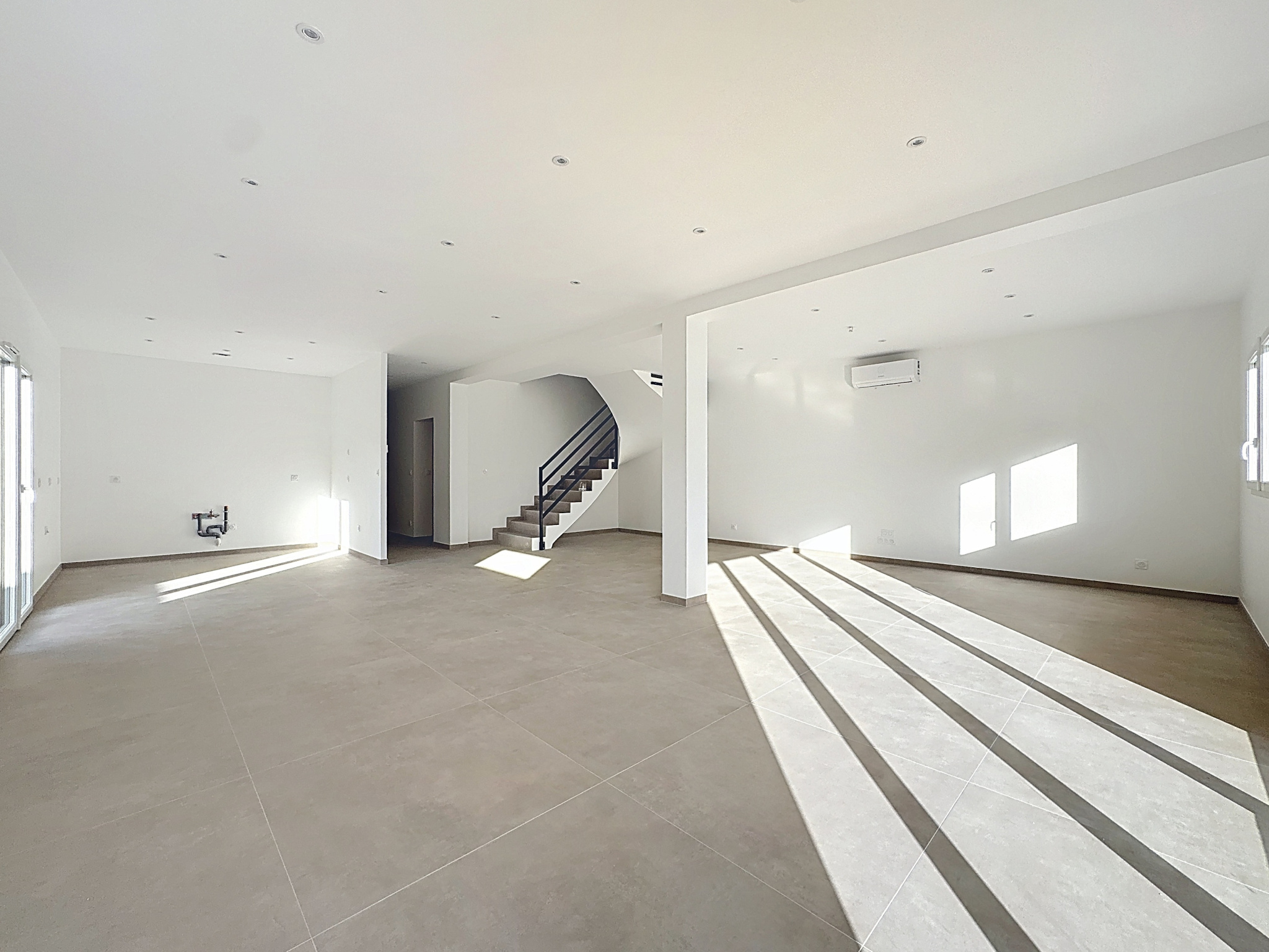 Au rez-de-chaussée vous trouverez: une entrée, un dégagement, un vestiaire, un cellier buanderie avec douche, des wc séparés et un espace salon/séjour/cuisine donnant sur la terrasse de plus de 70 m2.