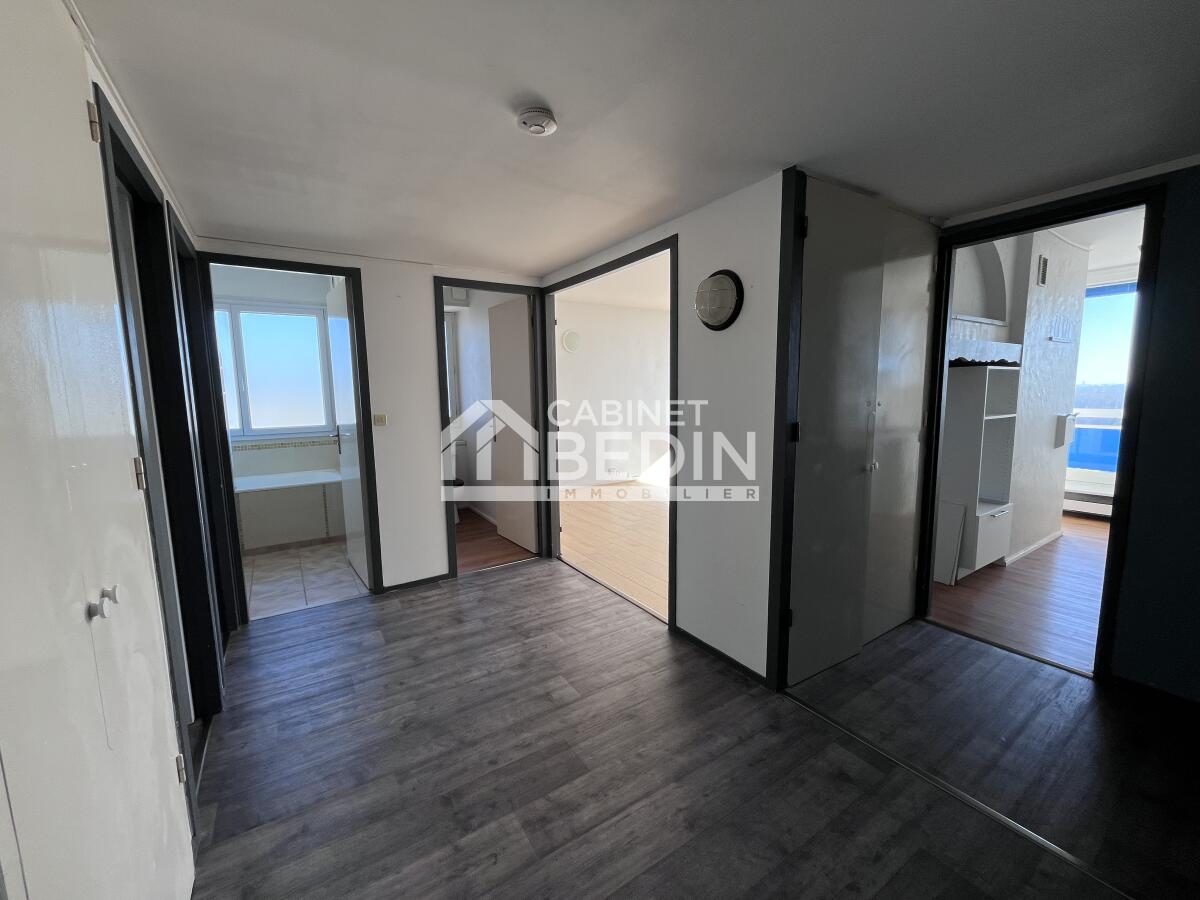 T4 LUMINEUX 80m2 AVEC ASCENSEUR. Belles surfaces pour cet appartement très lumineux type T4 comprenant entrée aux beaux volumes avec rangements. 3chambres avec placards. Séjour plein sud ouvert sur grand balcon couvert, a la vue dégagée. Cuisine aménagée. Salle de bains et WC séparé avec fenêtre et rangements.
