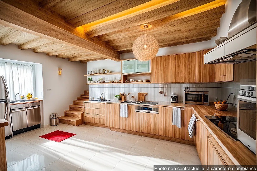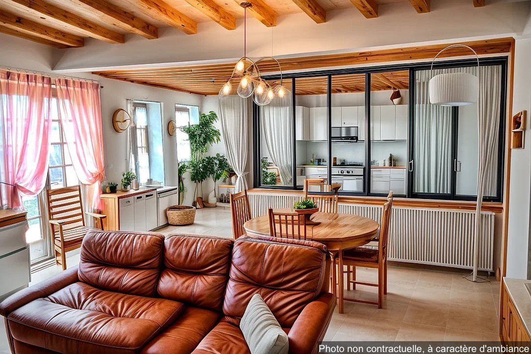 - 1 espace cuisine ouvrant sur salon de plus de 50 m2, avec cheminée