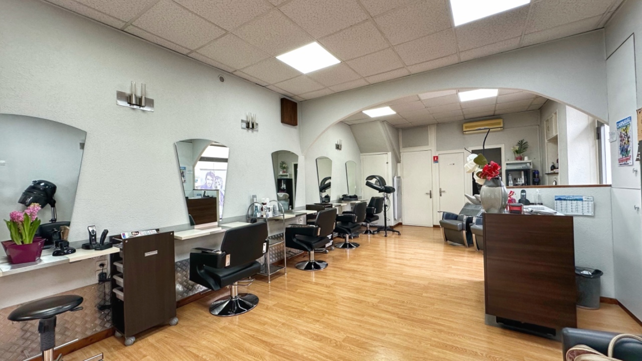 Il se compose au rdc d’un salon de coiffure de 32 m² profitant d’une vitrine de 2,30 mètres, d’une réserve avec évier de 2,09 m² et d’un WC de 1 m².