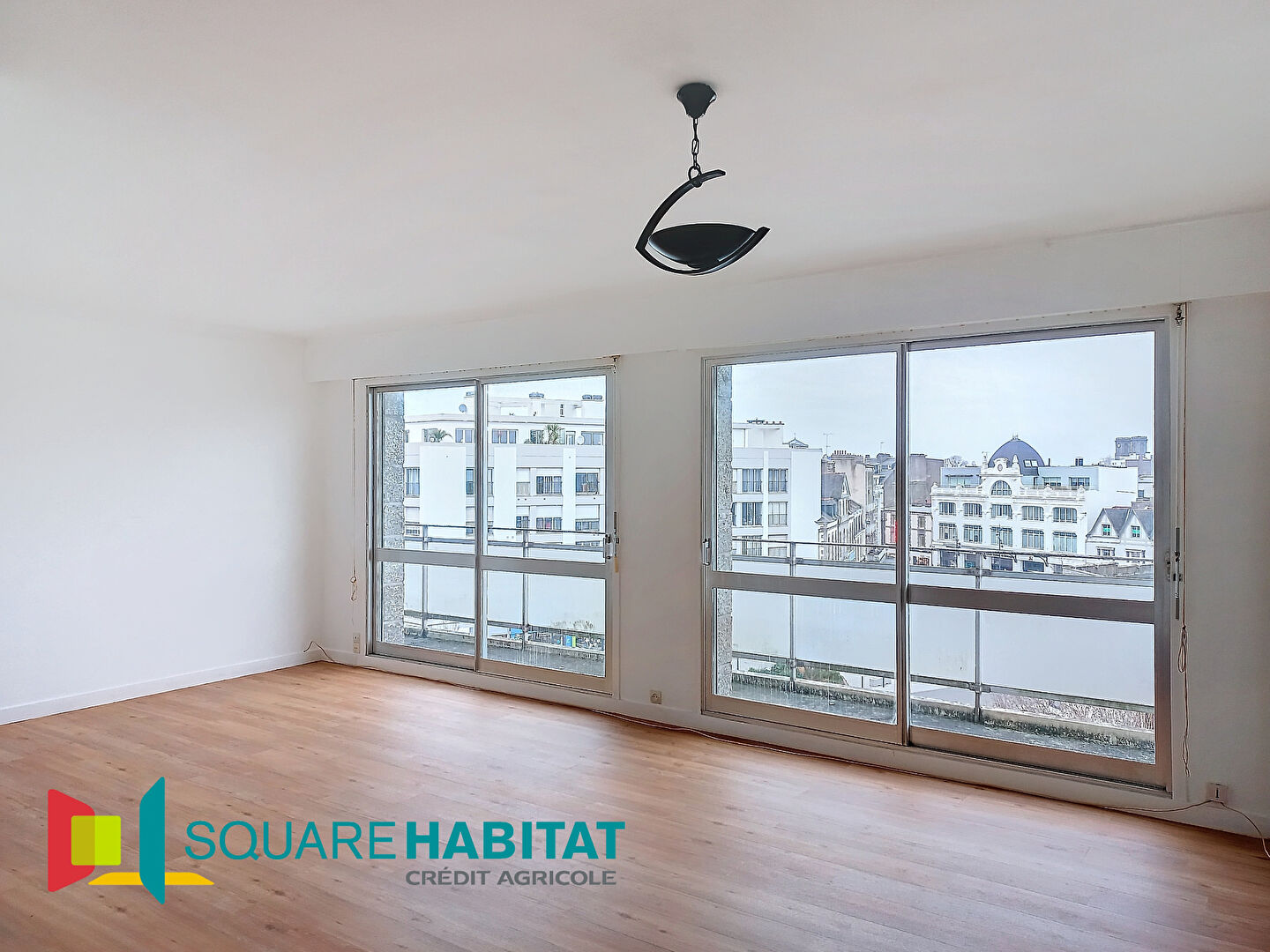 SAINT BRIEUC ( 22000) HYPER CENTRE EXCLUSIVITE : Spacieux appartement de 79.9 m2 dans une résidence sécurisée avec ascenseur composé d'une entrée, d'un séjour salon lumineux donnant sur un grand balcon bien exposé, une cuisine aménagée avec un 2ème balcon, 2 chambres disposant de rangements, deux salle de bains et un WC séparée. GARAGE ET CAVE Vue dégagée SQUARE BOX GARANTIE REVENTE 7 ANS Charges 4326 Euro/an comprenant le chauffage, l'eau et l'entretien des parties communes .