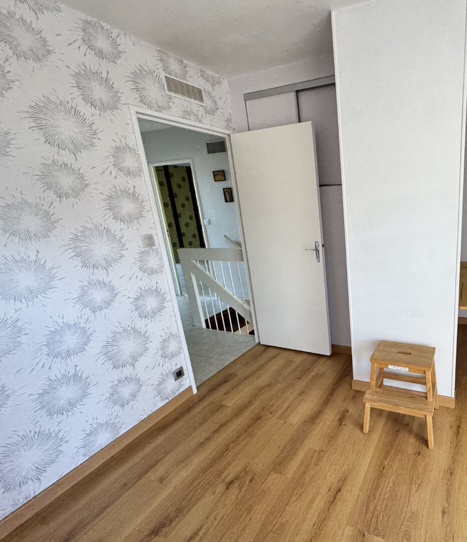 Belle entrée sur salon et séjour traversant avec insert à granulés de 2022, cuisine indépendante aménagée, double terrasse de chaque côté de la maison, garage avec cellier. Les trois chambres sur parquet, d'une belle superficie, se situent à l'étage, dont une de 17m² environ avec balcon. Chacune des chambres dispose d'un espace de rangement. Le palier dessert également une salle d'eau et un WC séparé.