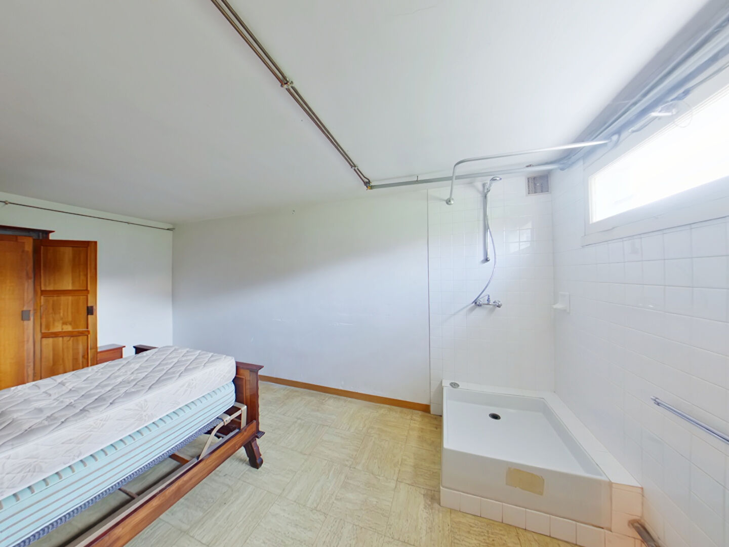 Au sous-sol une pièce aménagée avec douche, buanderie, atelier, double garage.
