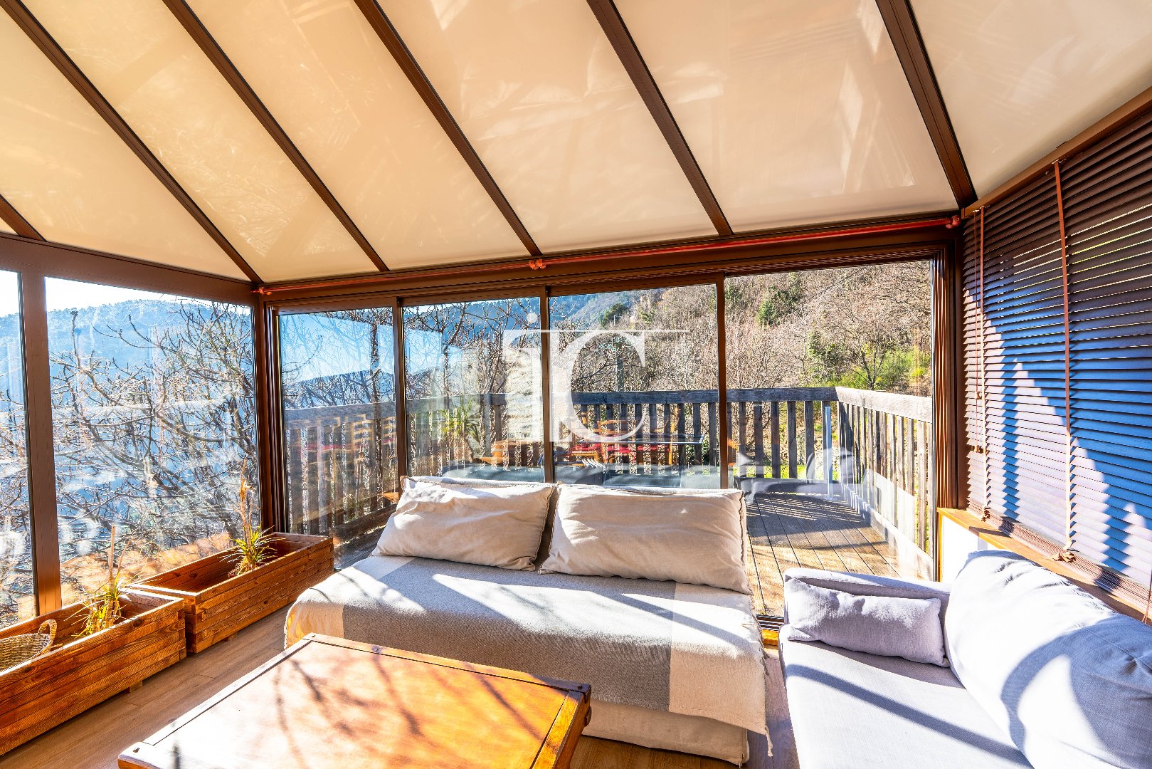 La propriété bénéficie d'une situation dominante, offrant une vue panoramique exceptionnelle sur les montagnes environnantes. Elle est située dans un environnement naturel et préservé, idéal pour les amoureux de la nature et de la tranquillité.