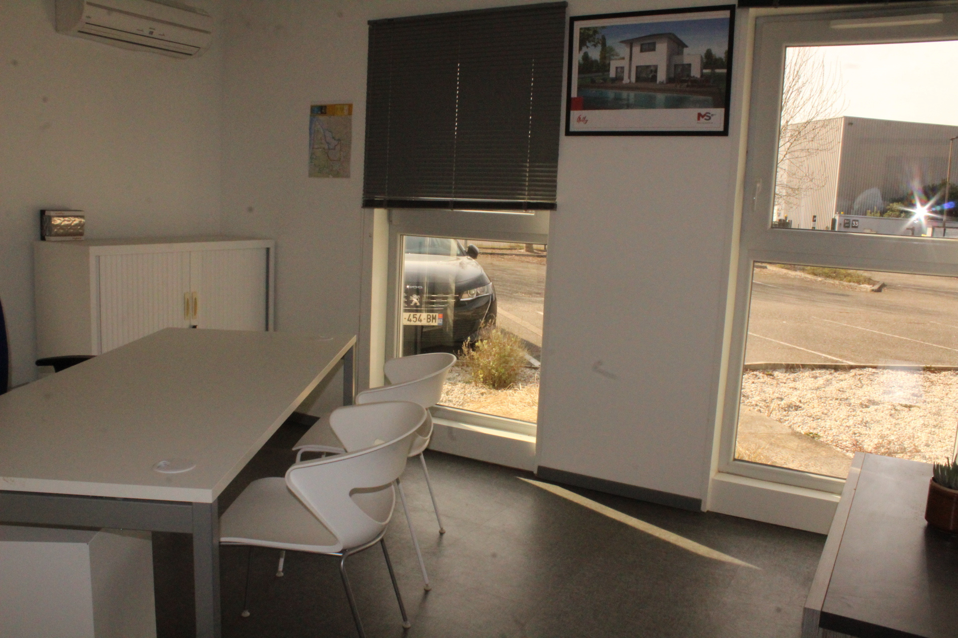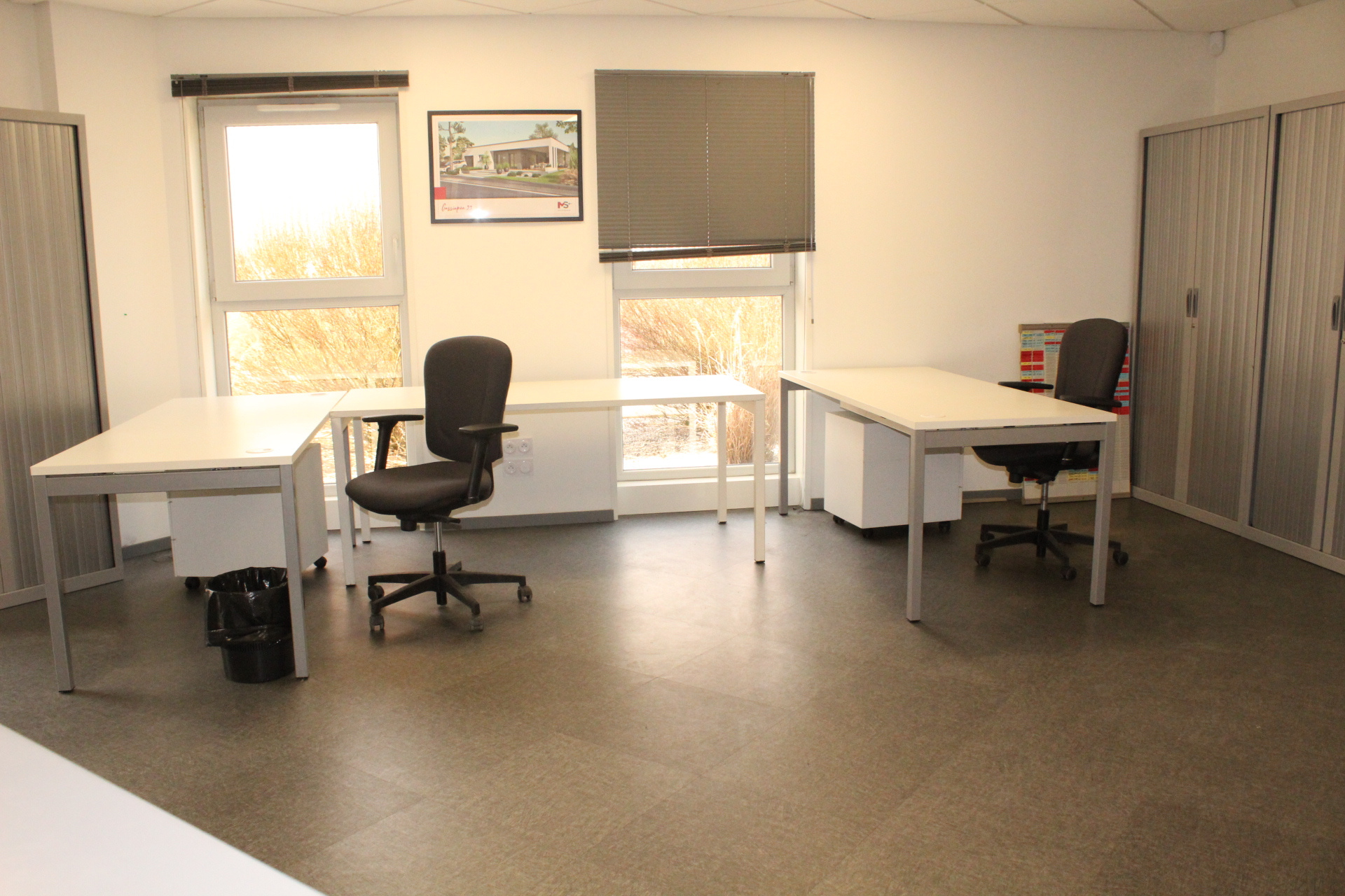 des bureaux, 1 salle de réunion + 1 salle bureau d'étude, 1 salle serveurs informatique, 1 salle d'archives , 2 WC.