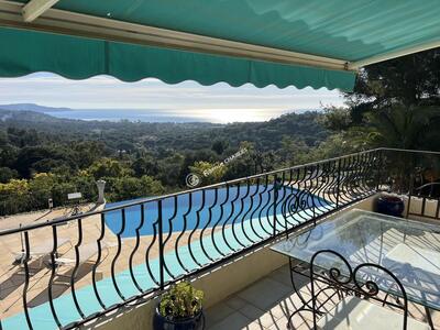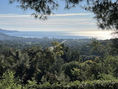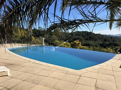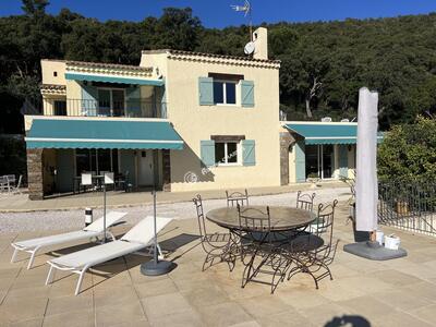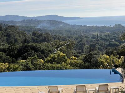 SITUATION UNIQUE pour cette VILLA de 9 pièces (206 m2 habitables) nichée dans un espace boisé classé, AVEC VUE PANORAMIQUE sur la mer et les Iles d'Or. Terrain de 2,2HA (22 000 m2) parfaitement aménagé. PISCINE 6x12 à débordement. 3 terrasses (100 m2). Double garage et place de parking. Forage et arrosage automatique. Chauffage central au gaz et climatisation réversible. Calme absolu.