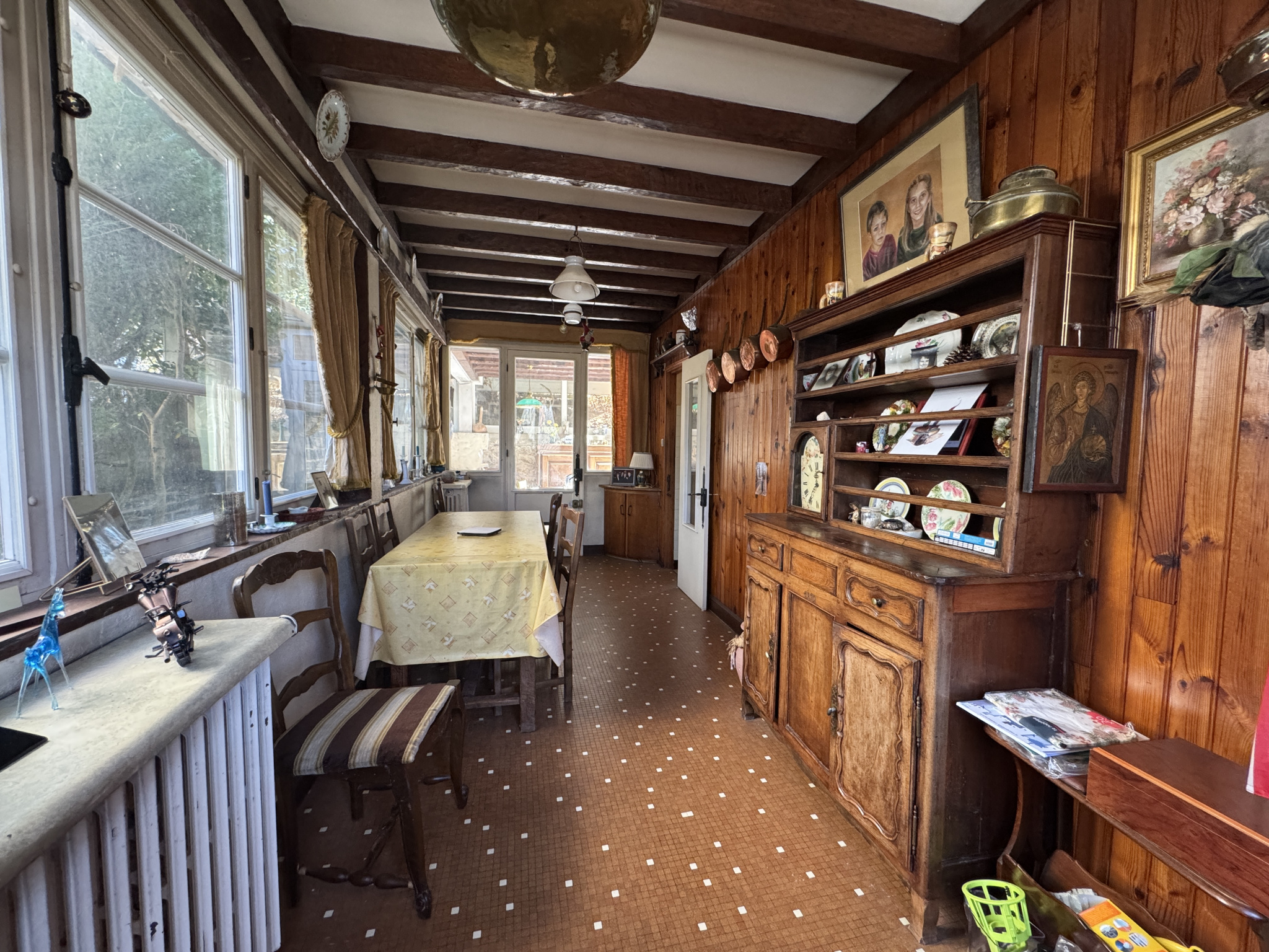 En rez de chaussée, deux garages, une chaufferie et avec une entrée indépendante 2 pièces chauffées avec point d'eau. Un vrai atout pour une activité professionnelle